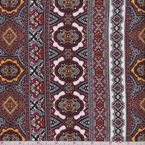 White/Brick/Gold Deco Stripe Rayon Crinkle Fabric