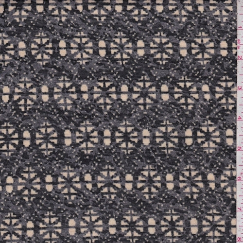 Dark Grey/Beige/Black Medallion Jersey Knit Fabric