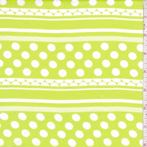 1 7/8 YD PC-Lime/White Polka Dot Stripe Rayon Challis Fabric