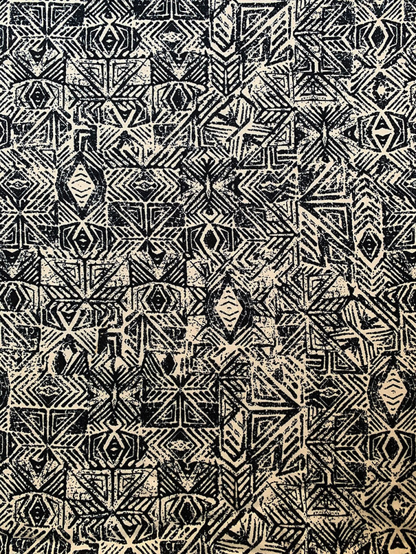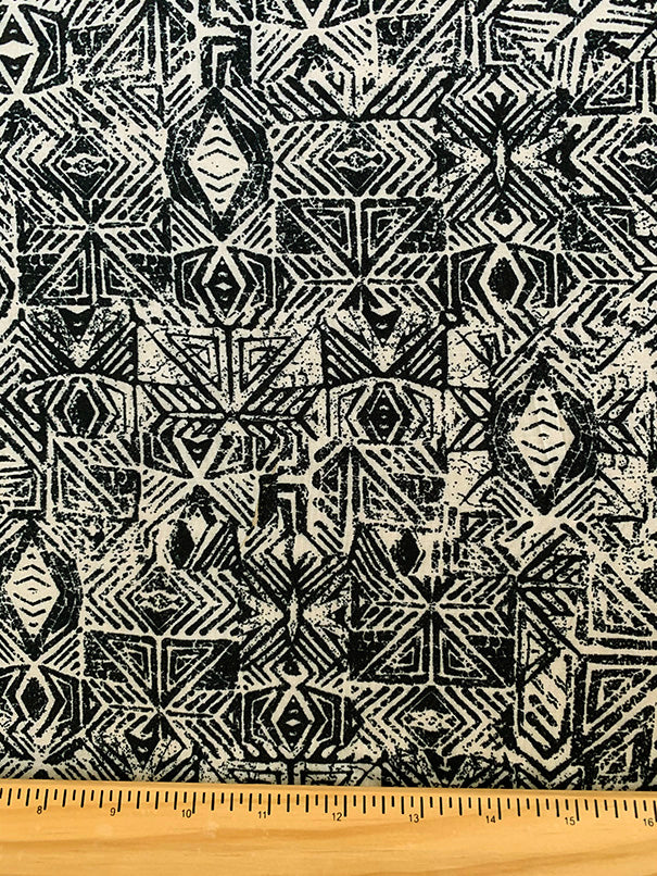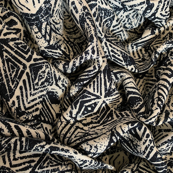 2 YD PC-Black and Cream Aztec Print Rayon Challis Fabric