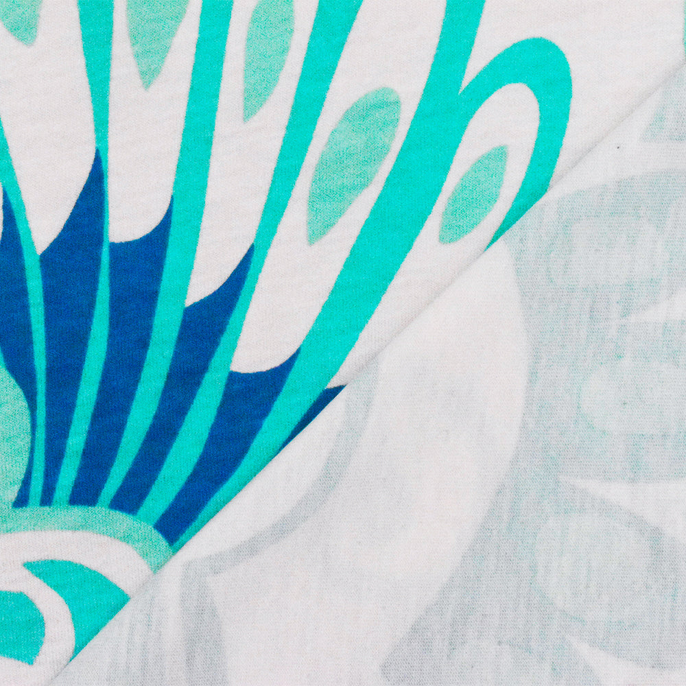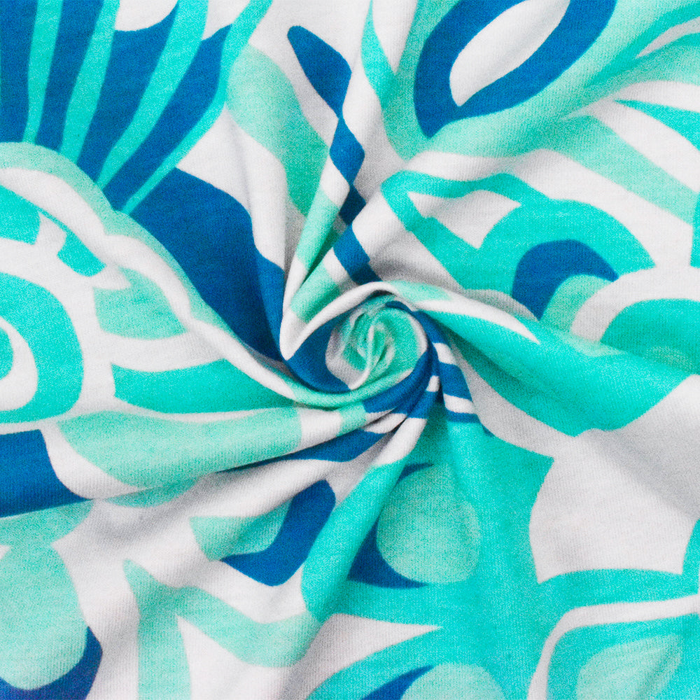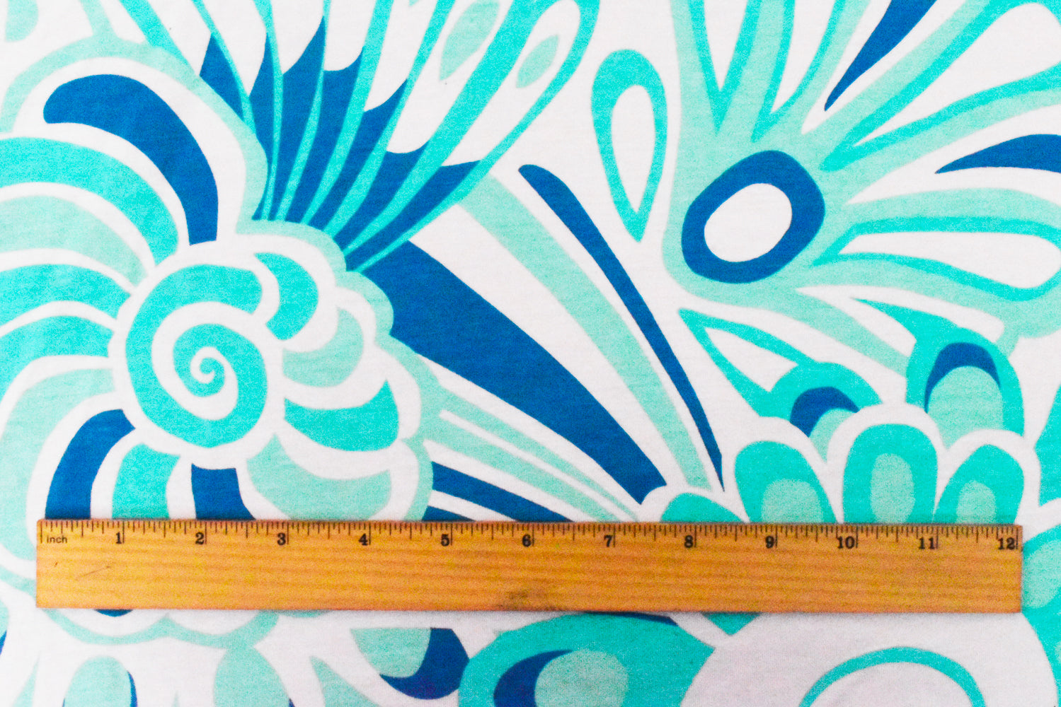 2 YD PC-Blue-White-Multi Abstract Shell Printed Rayon Jersey Knit Fabric