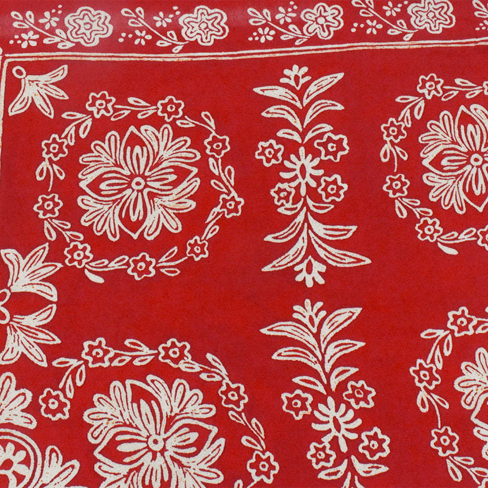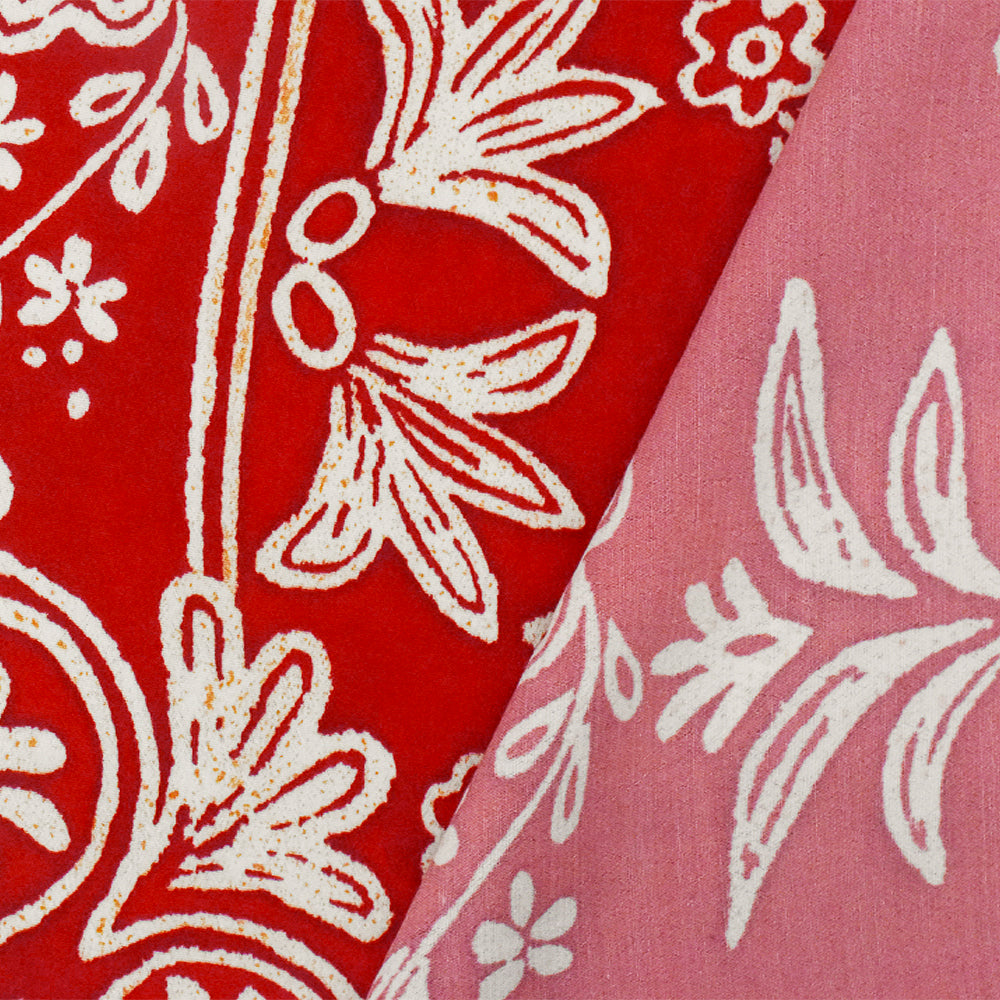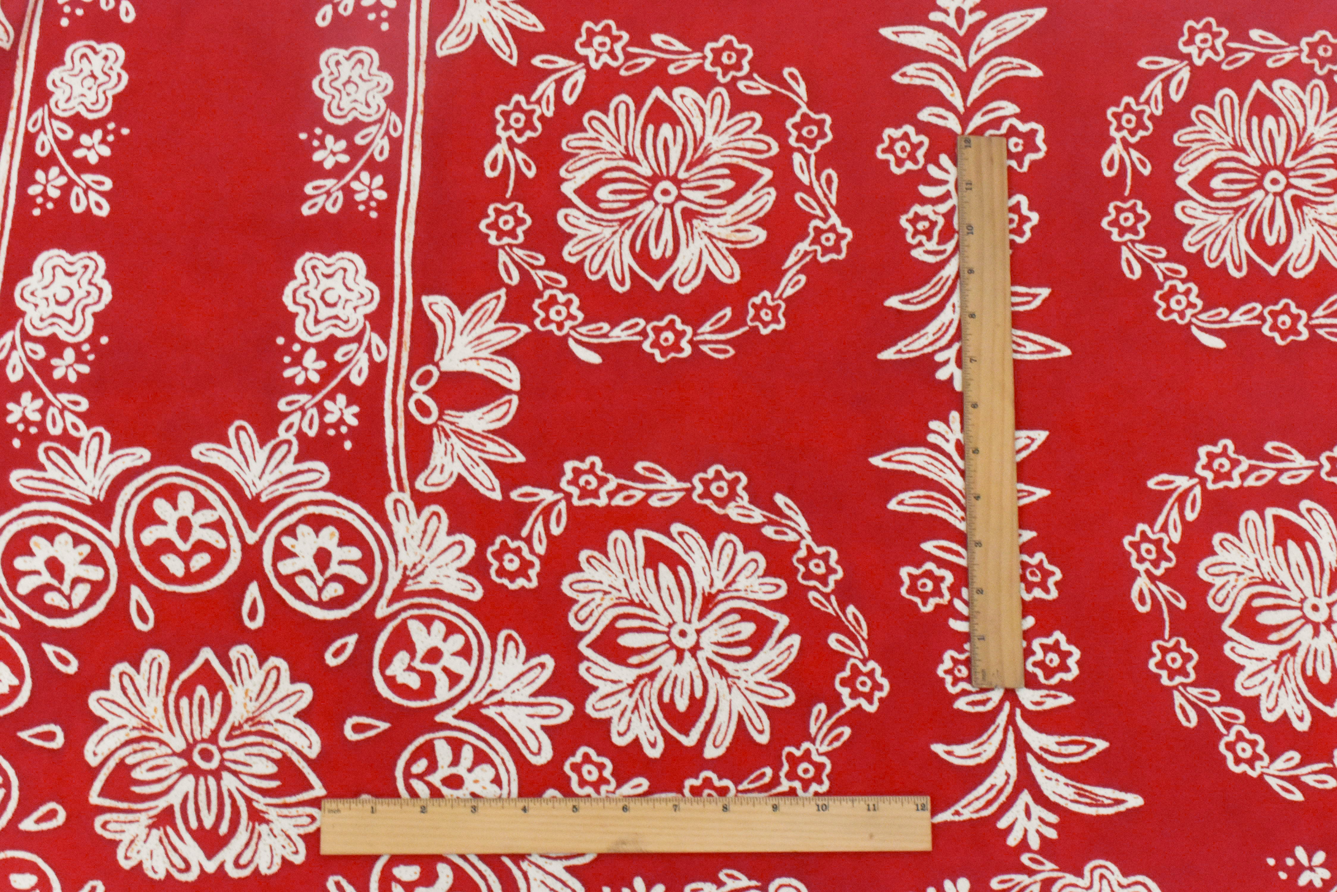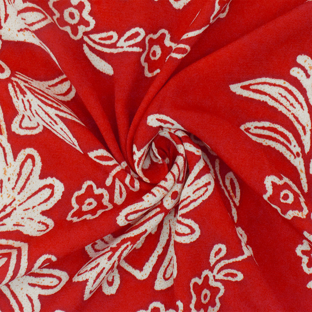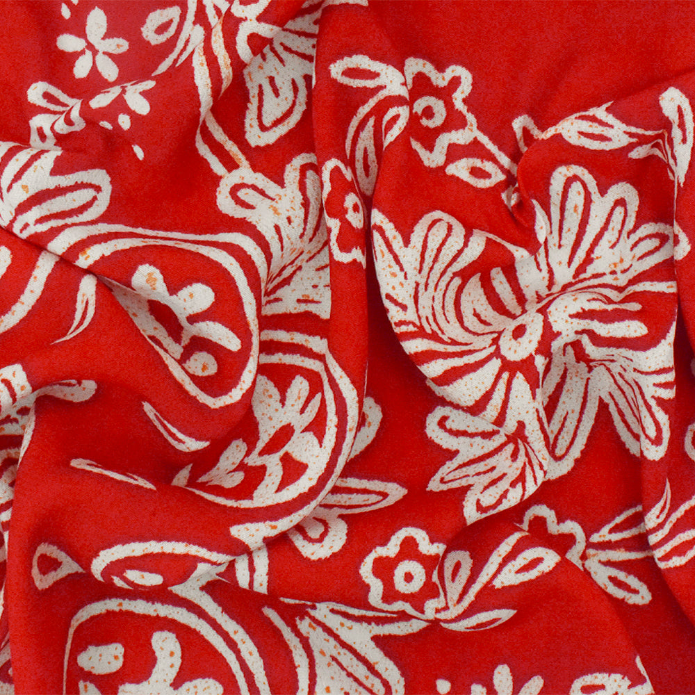 4 YD PC-Red-Ivory-Orange Famous Designer Floral Print Viscose Crepe Faille Fabric