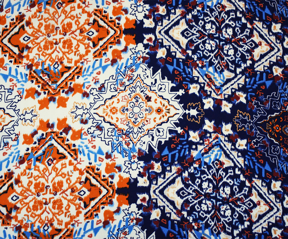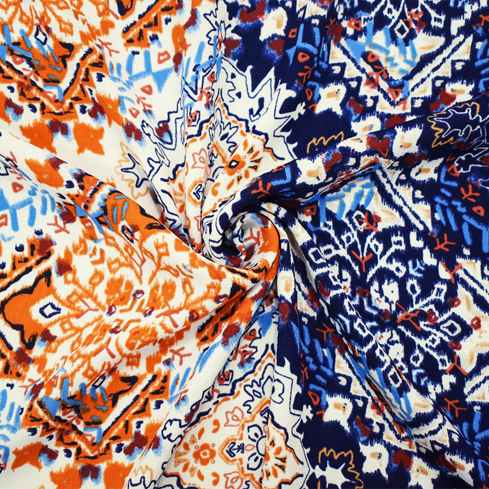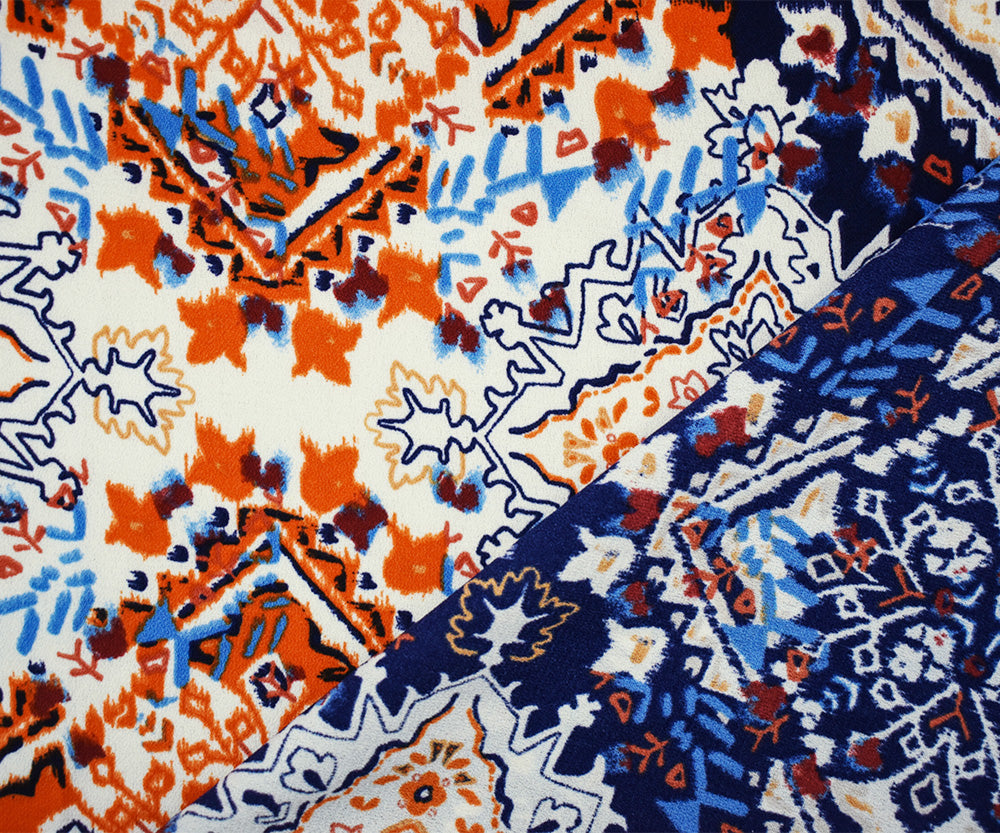 1 YD PC-Deep Blue-Orange-Multi Aztec Printed Momie Crepe Georgette Woven Fabric