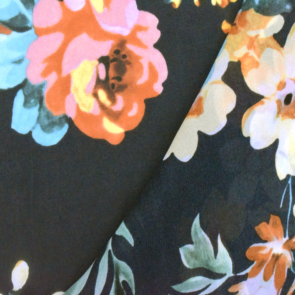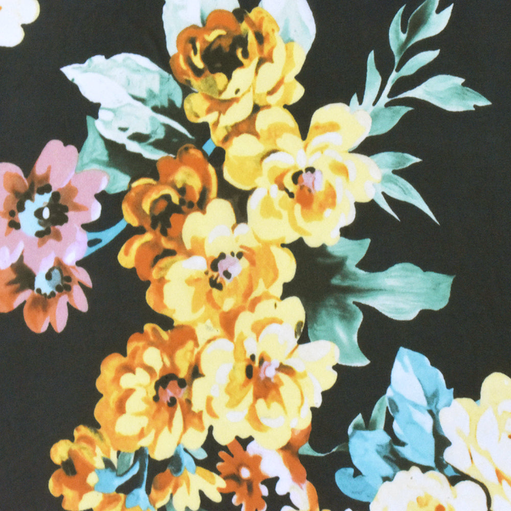 2 1/2 YD PC-Black-Multi Famous Designer Floral Print Viscose Chiffon Woven Fabric