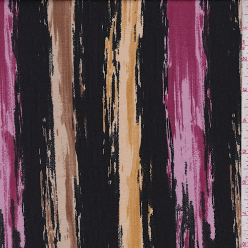 2 1/2 YD PC-ITY Black/Gold/Mulberry Brushstroke Stripe Jersey Knit Fabric