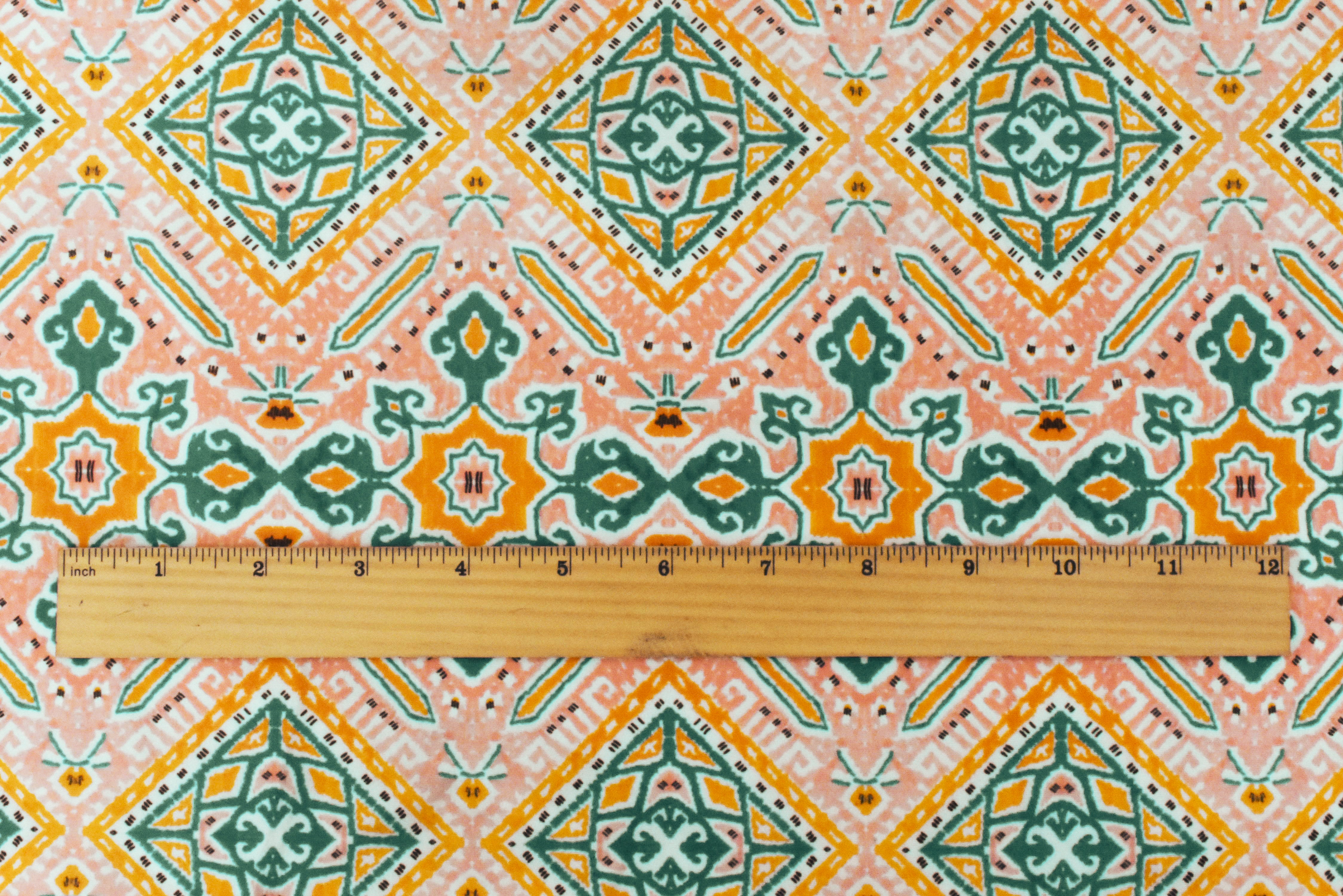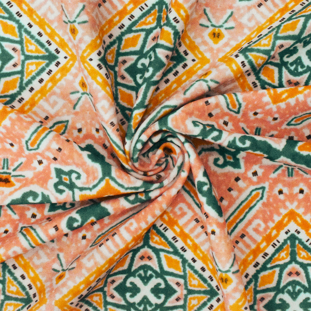 4 YD PC-Coral-Green-Multi Moroccan Printed Stretch poly Tricot Knit Swimwear Fabric