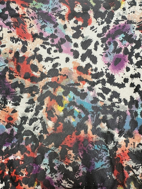 4 YD PC-White Multi Splatter Print Stretch Mesh Fabric
