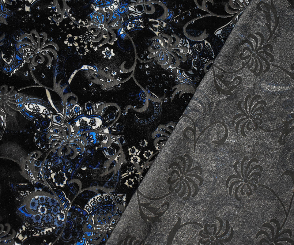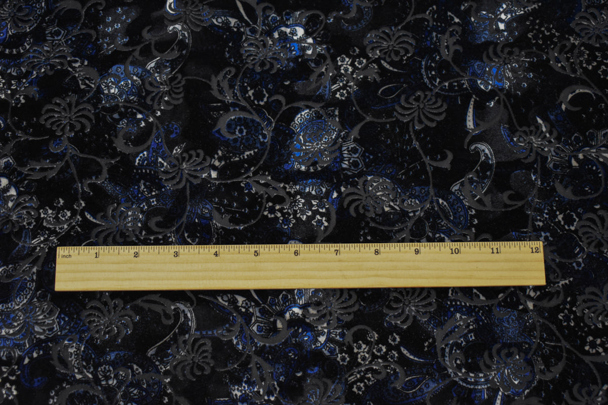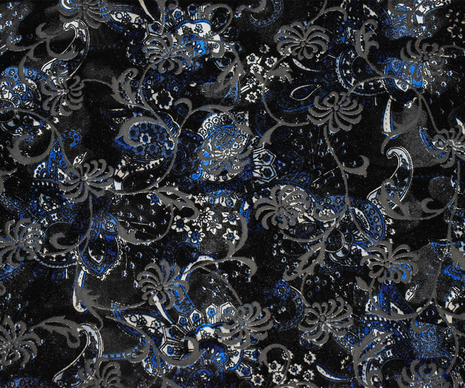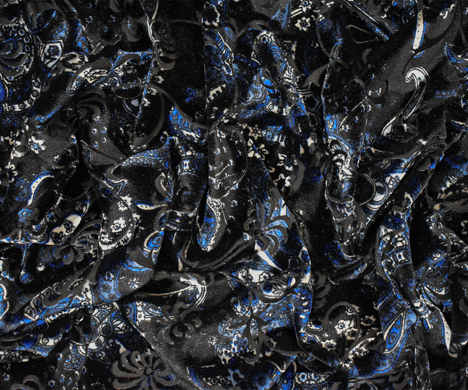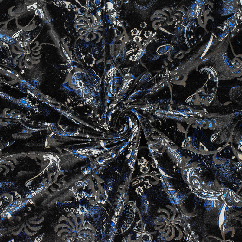 Blue Nylon Blend Famous Designer Paisley Burnout Velvet Knit Fabric