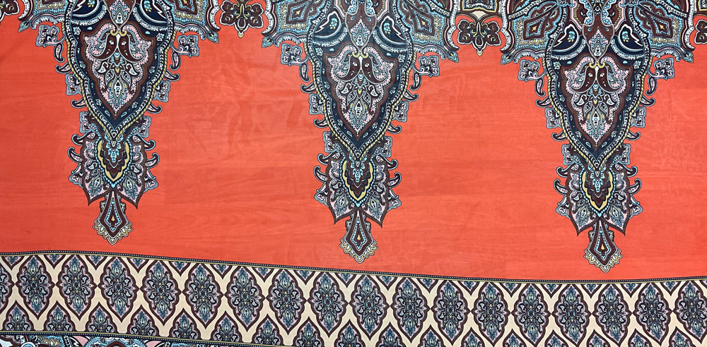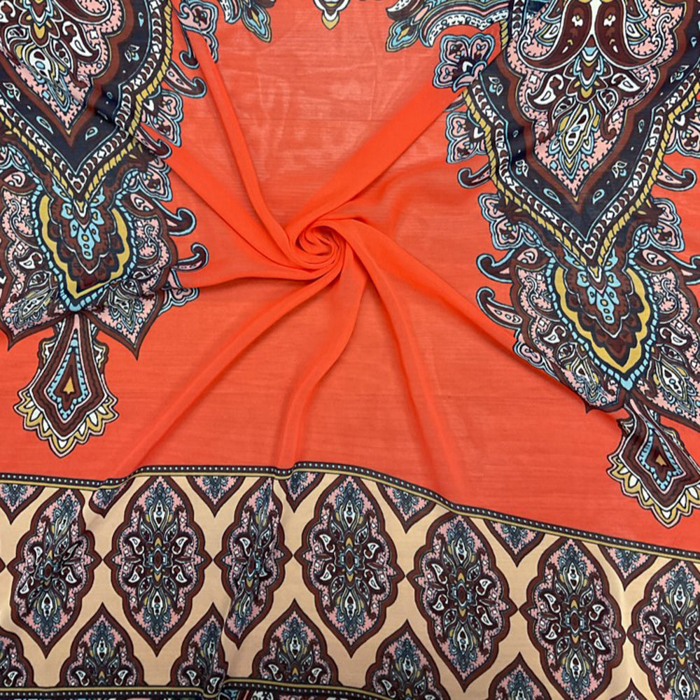 Red-Brown-Multi Poly Baroque Border Printed Chiffon Woven Fabric