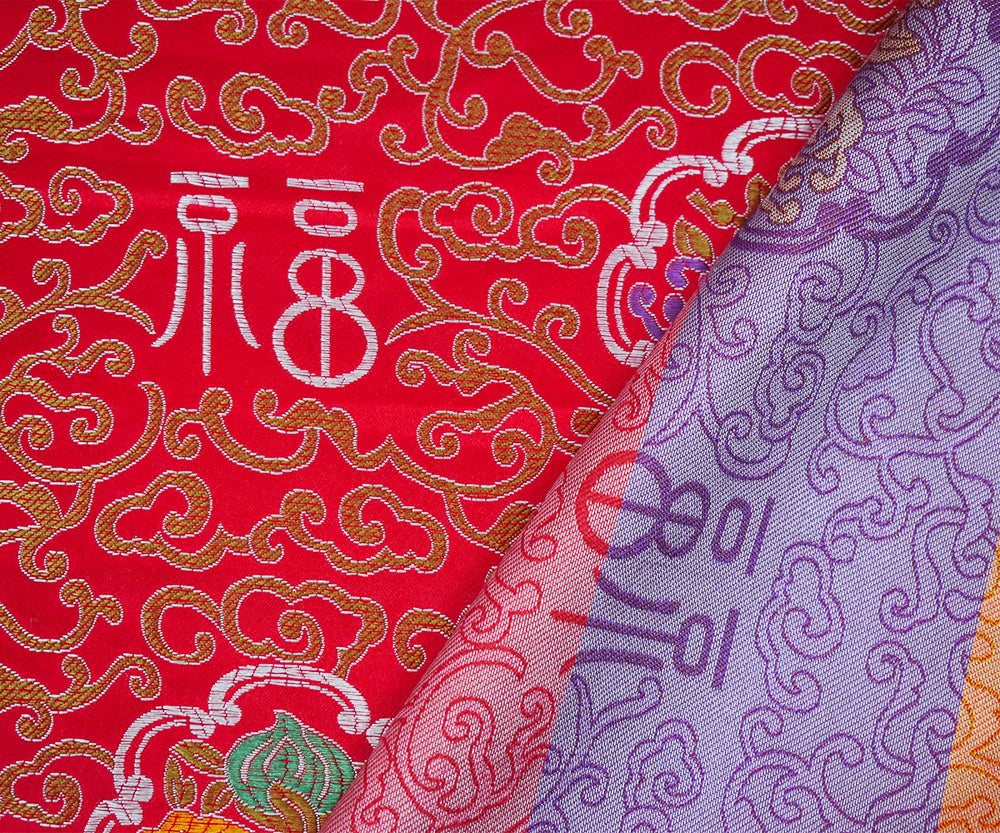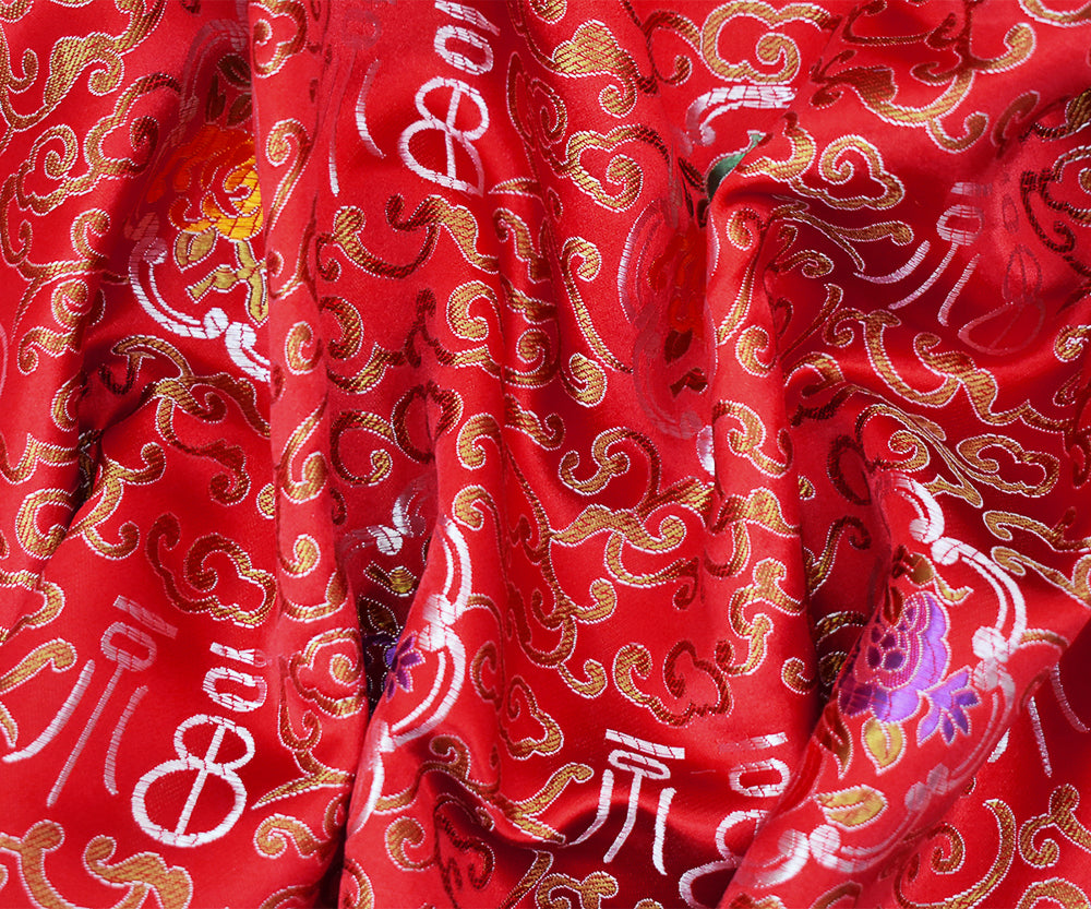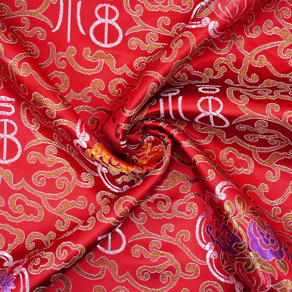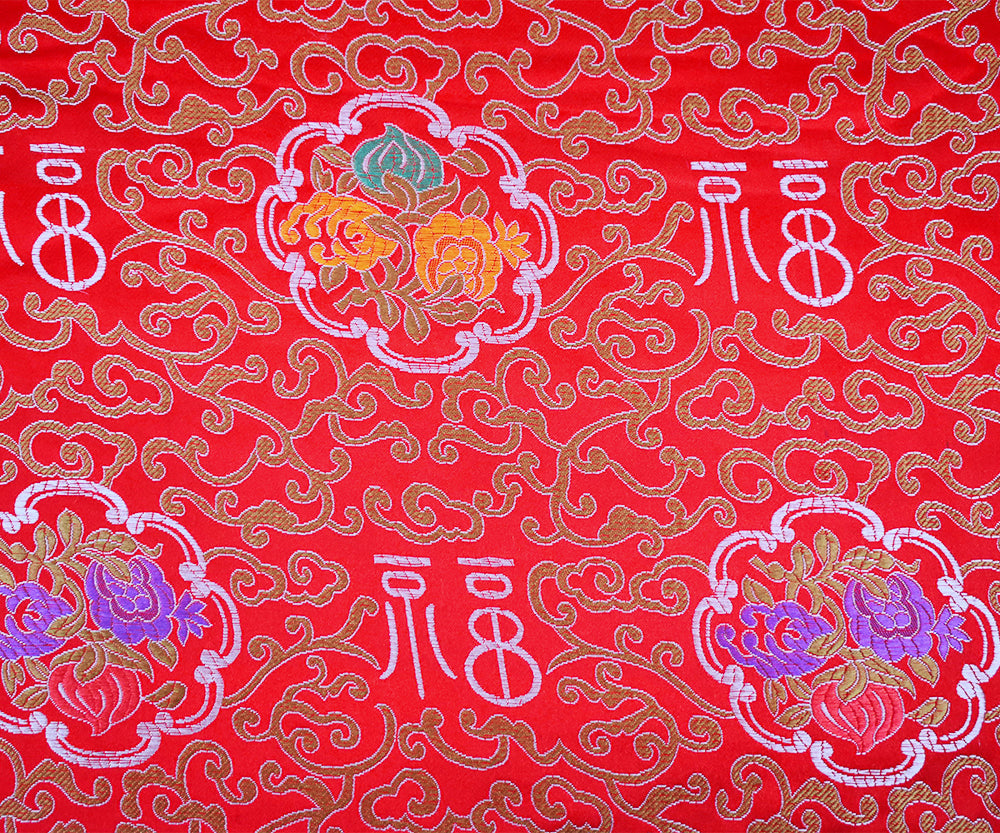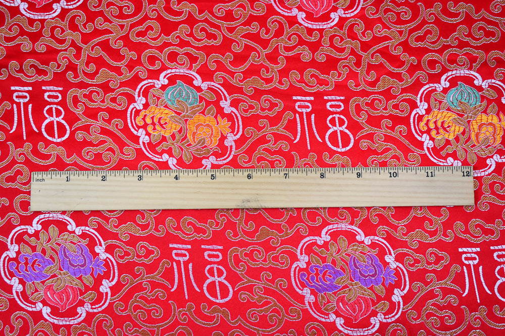 Red-Orange-Multi Polyester Fancy Floral Trellis Chinese Brocade Woven Fabric