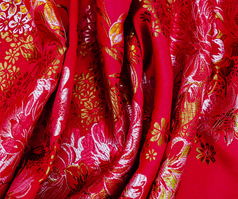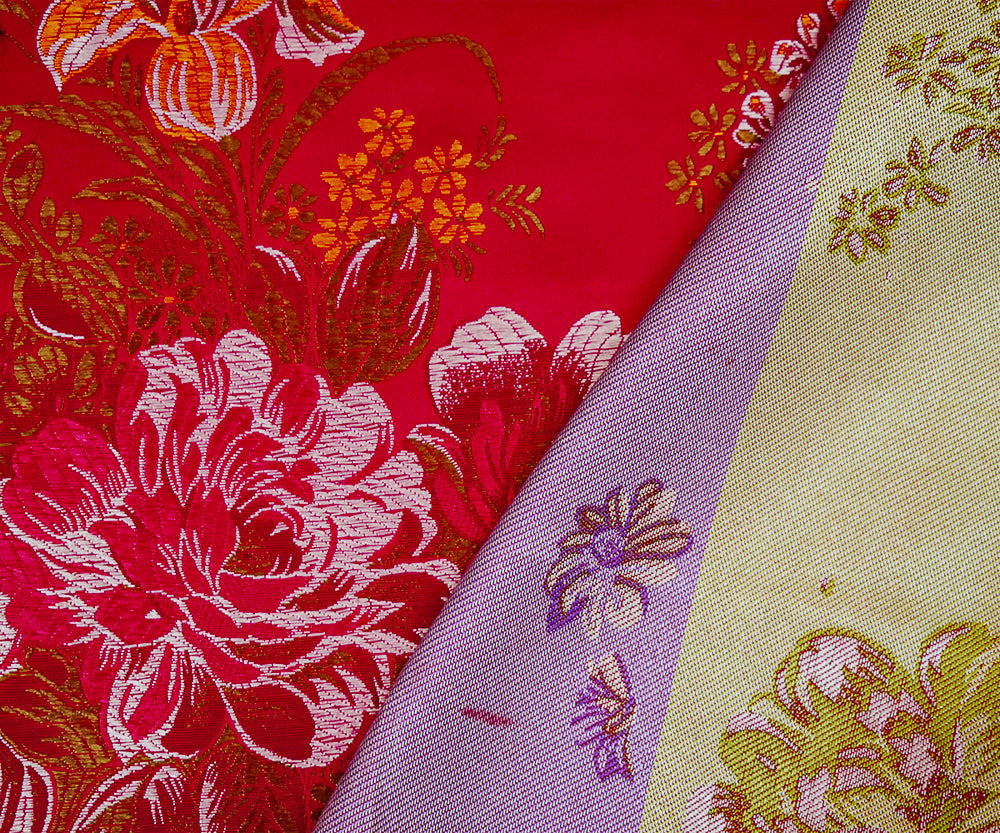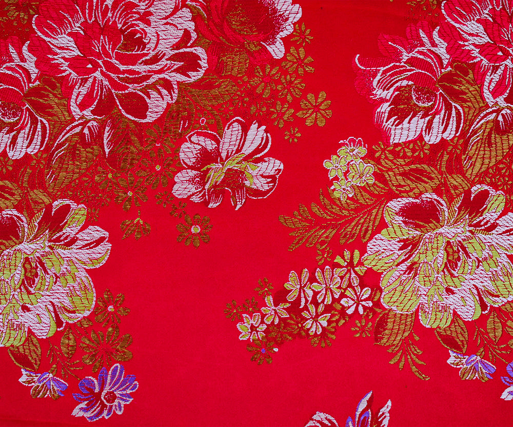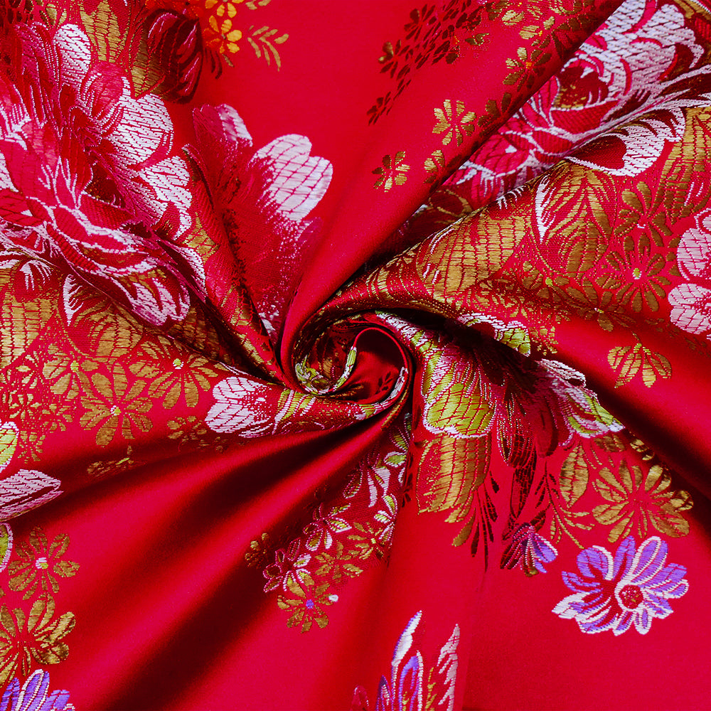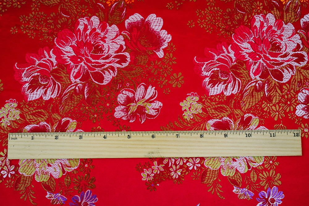 Red-Orange-Multi Polyester Floral Chinese Brocade Woven Fabric