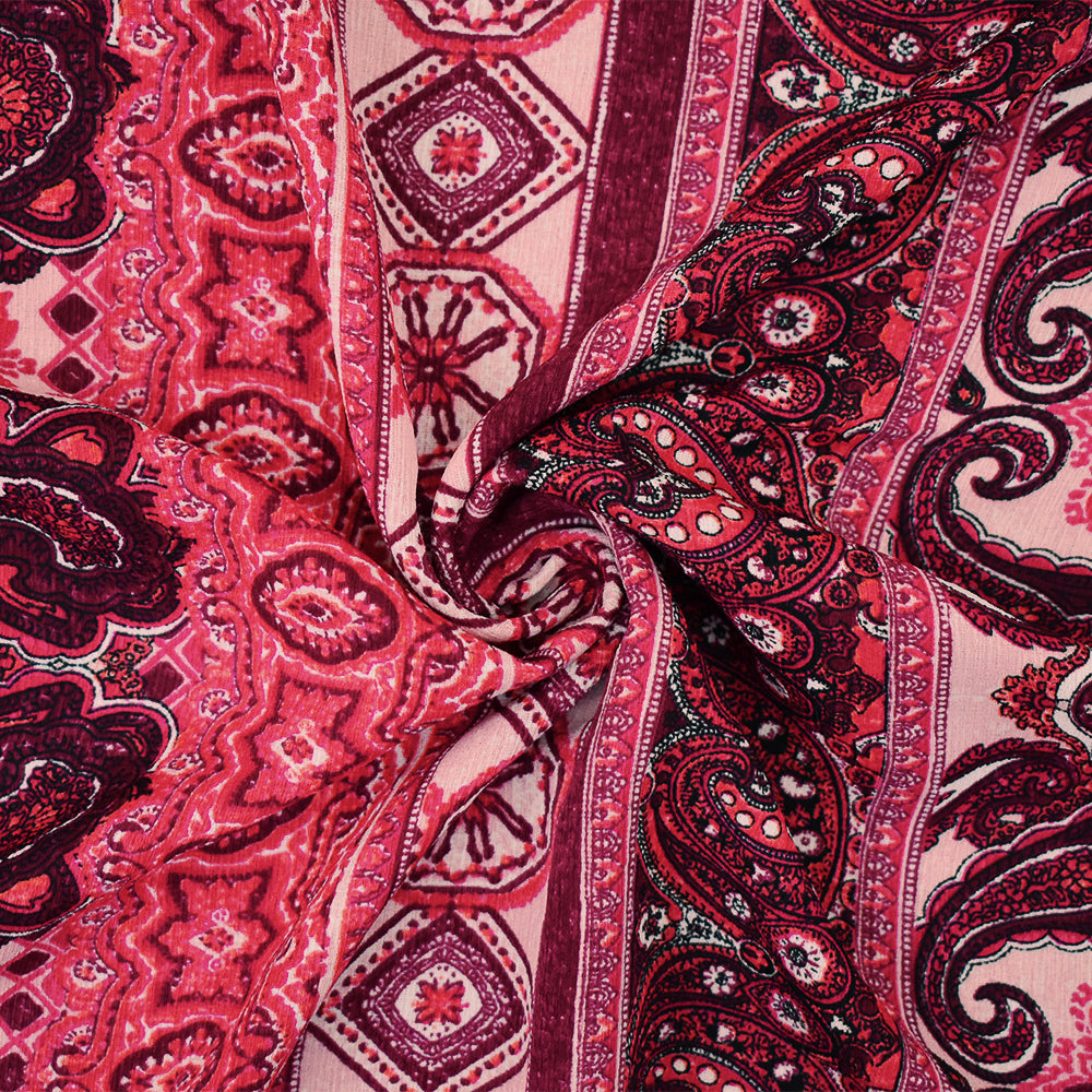 Red-Pink-Multi Poly Paisley Baroque Printed Crepe Georgette Woven Fabric
