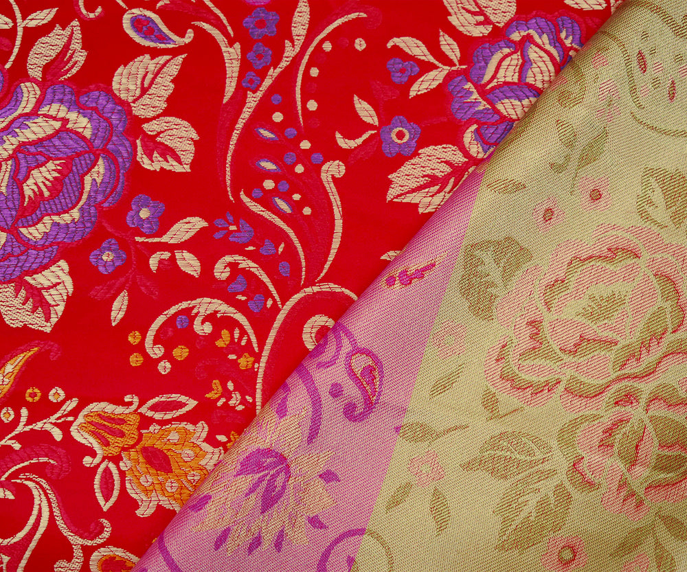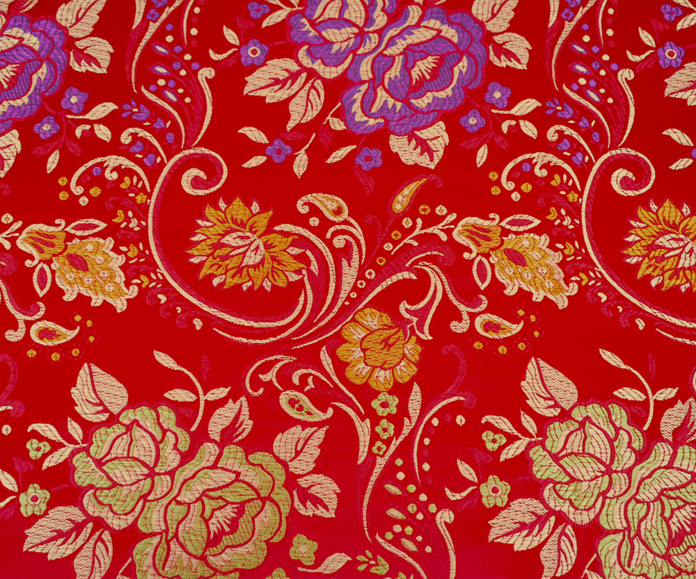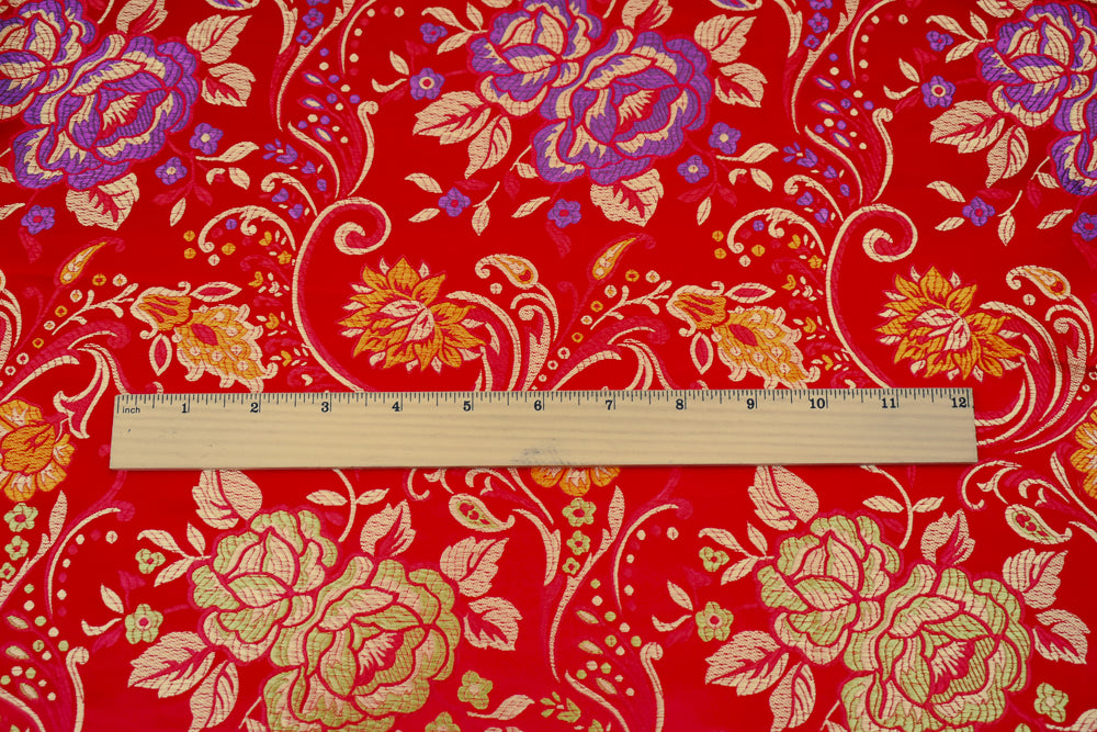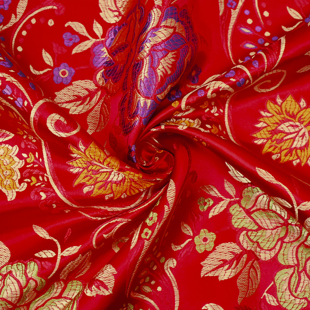 Red-Purple-Multi Polyester Floral Vine Pattern Chinese Brocade Woven Fabric