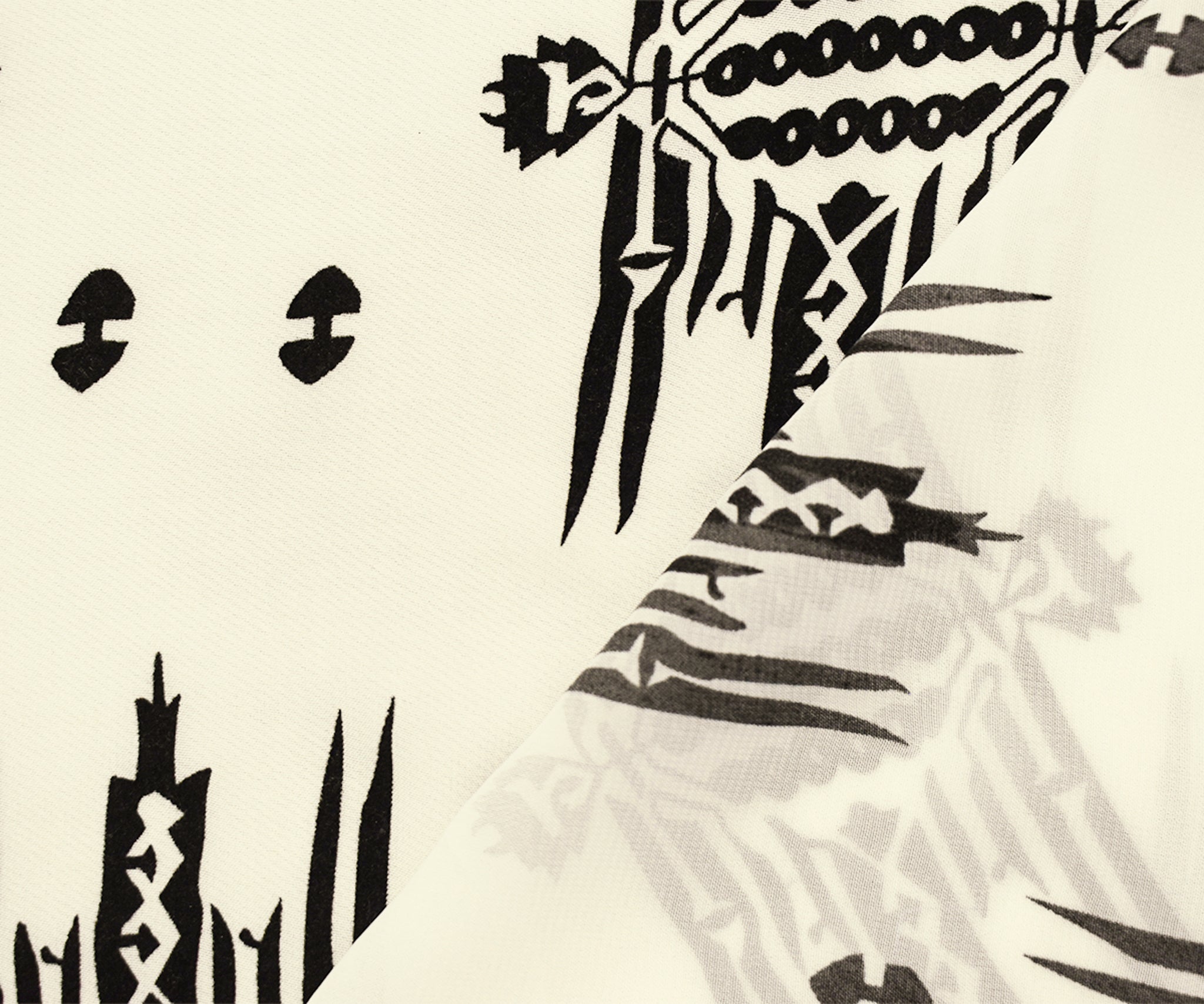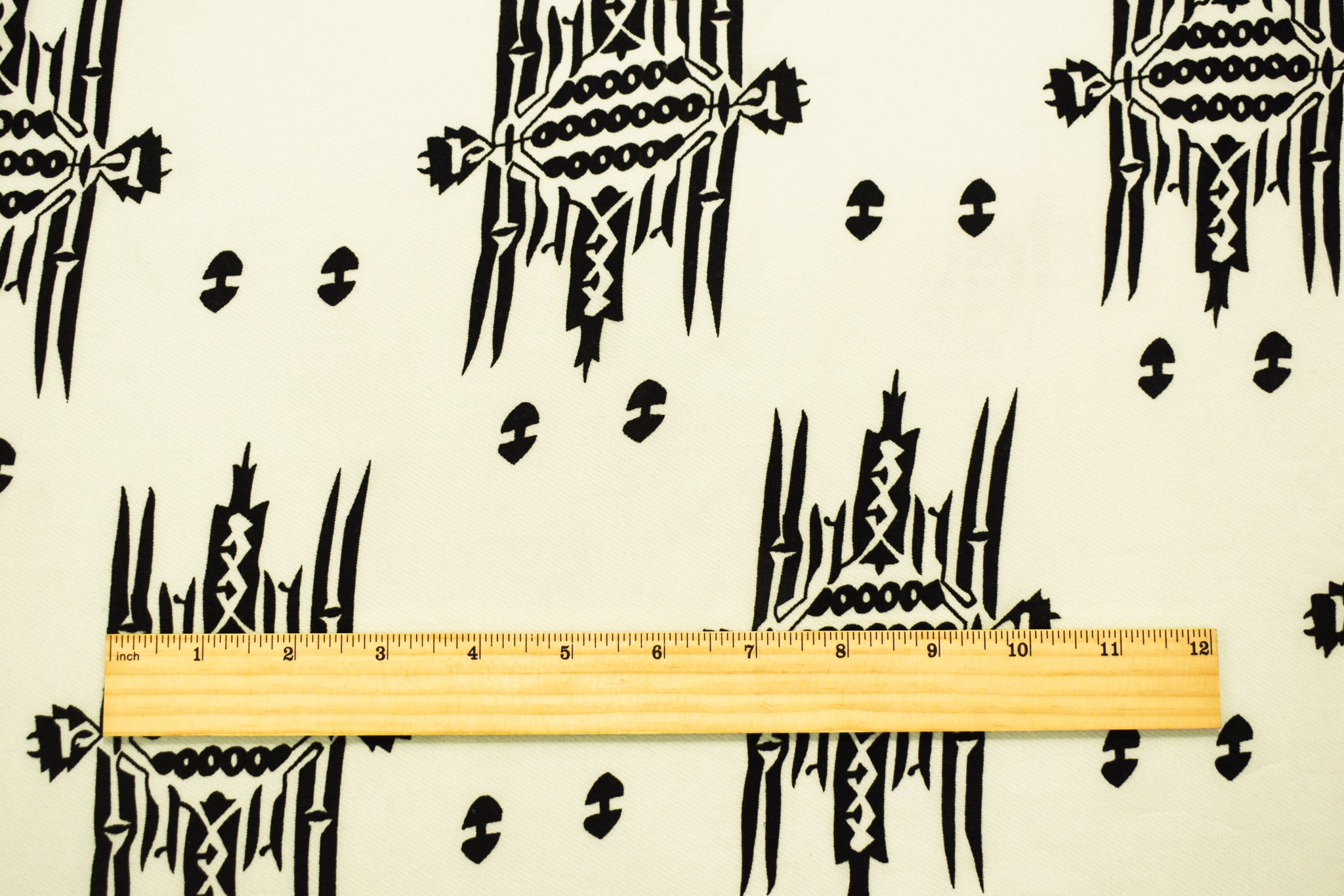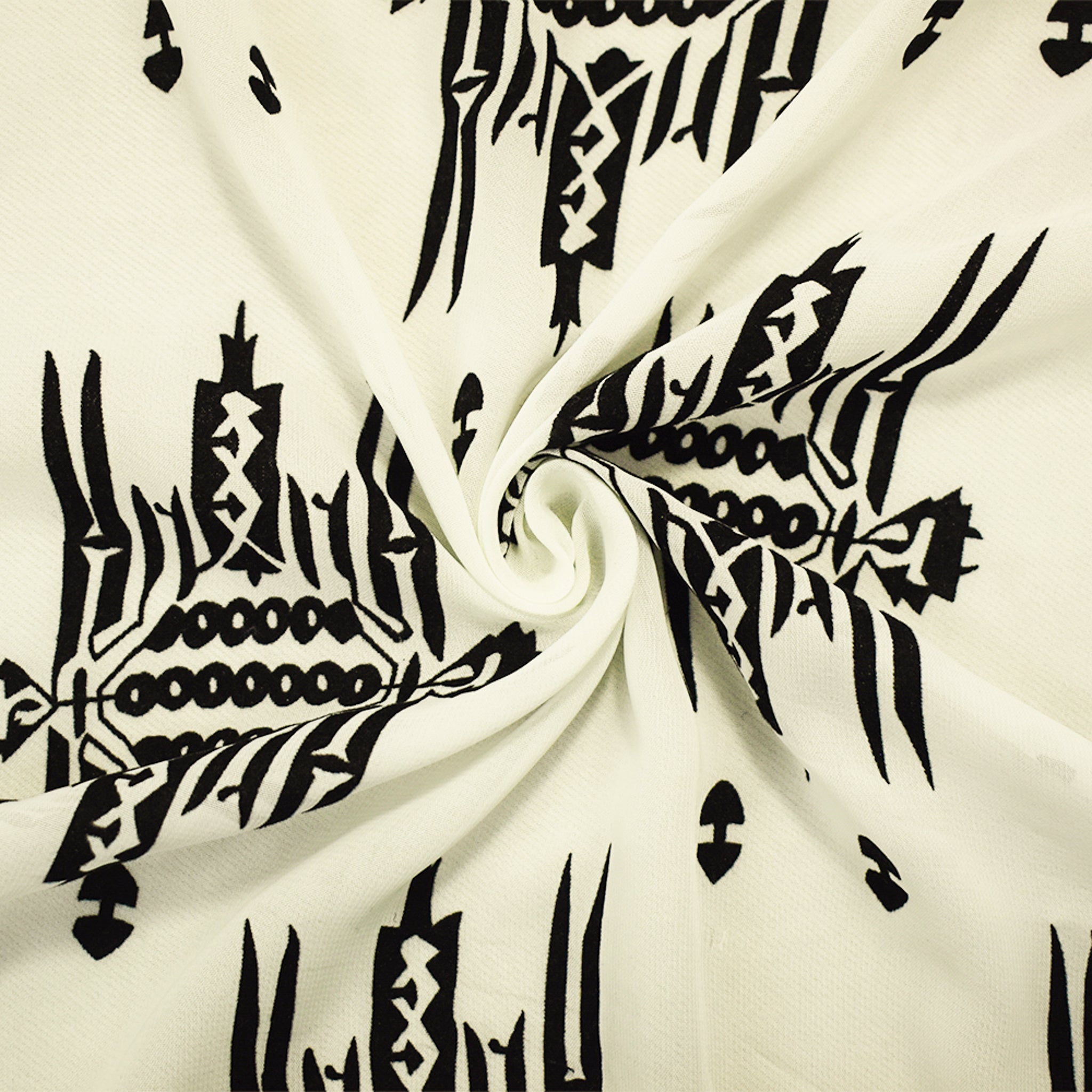 White-Black Poly Poly Abstract Aztec Velvet Flocked Chiffon Woven Fabric