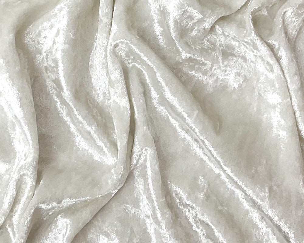 White Poly Spandex Stretch Crushed Velvet Knit Fabric