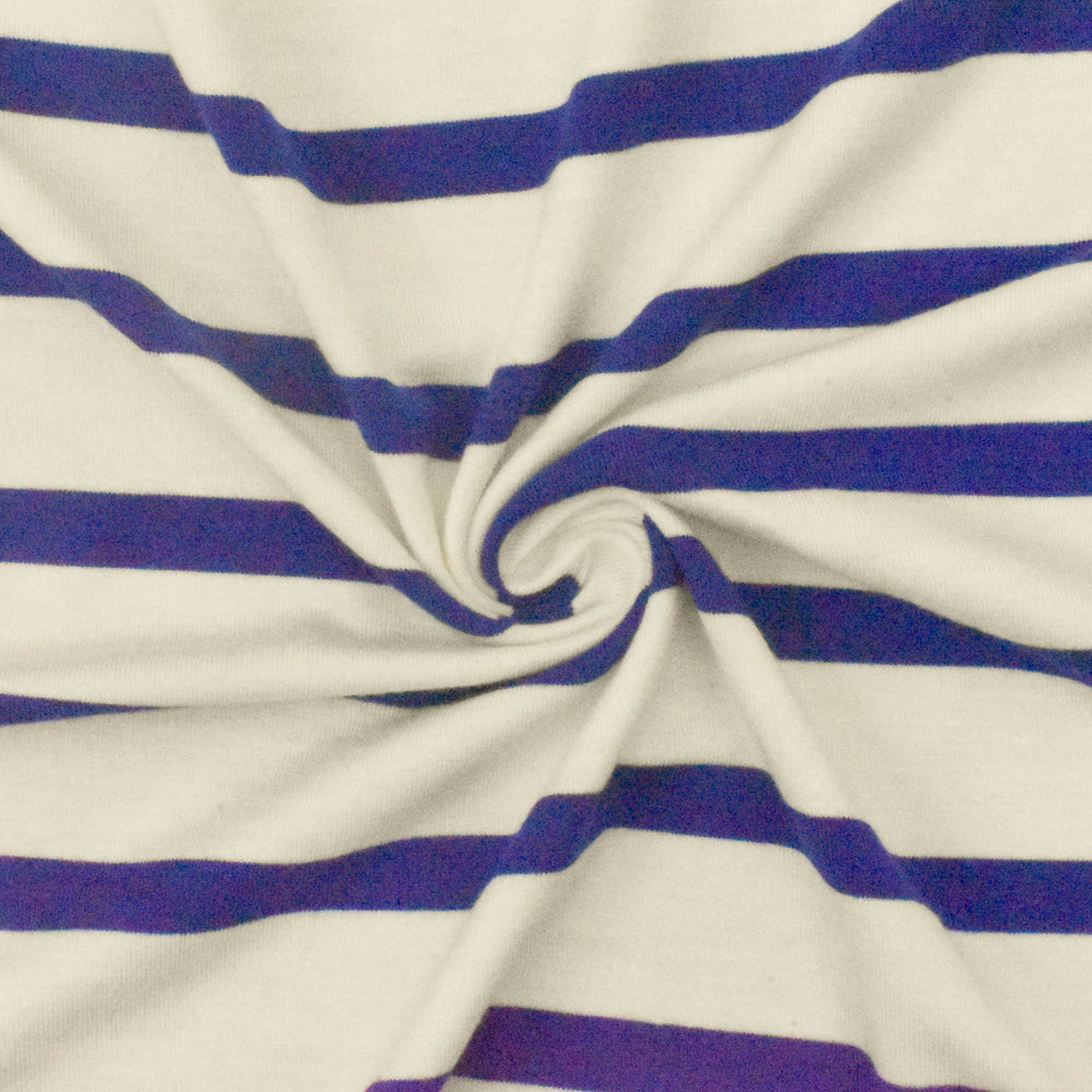 Blue-Ivory Stripe Stretch Spandex Rayon Modal Jersey Knit Fabric