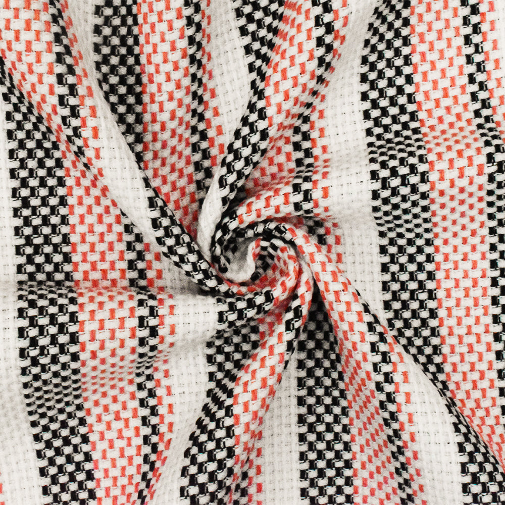 Bright Orange-Black-White Stripe Poly-Linen Dobby Woven Fabric
