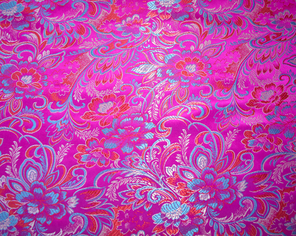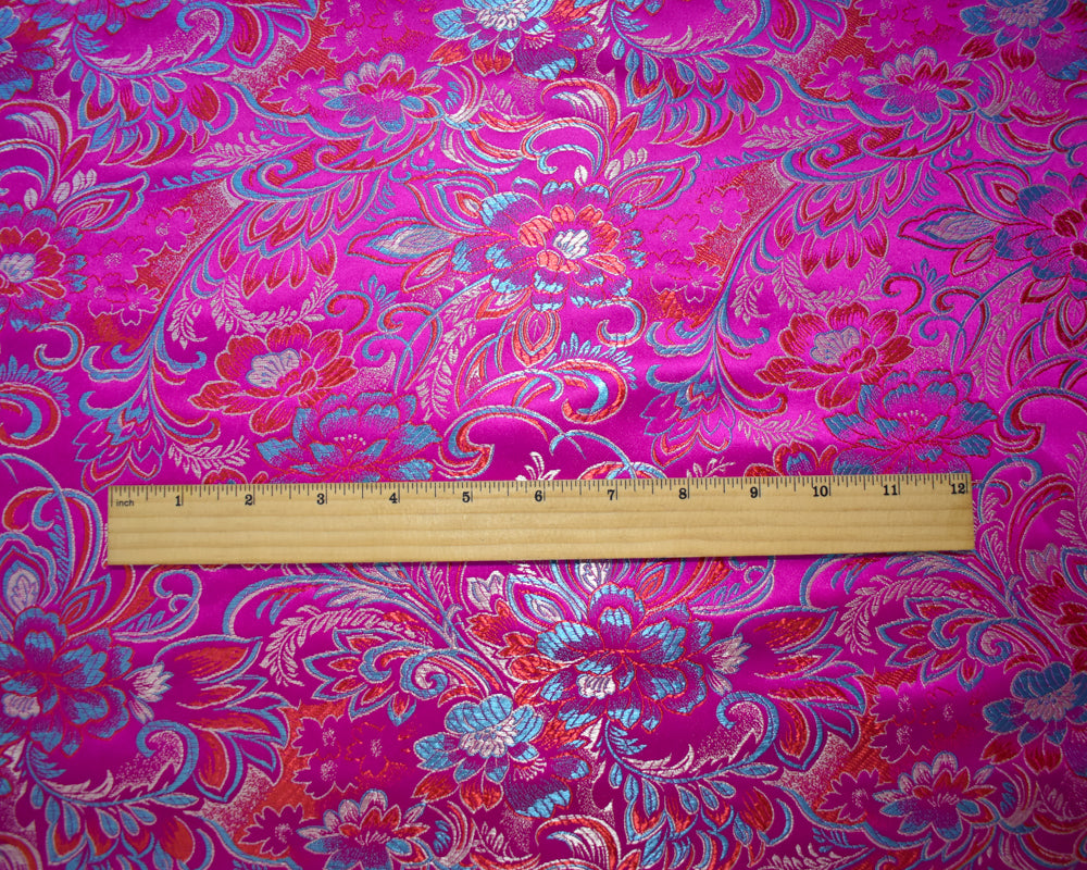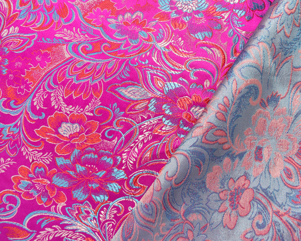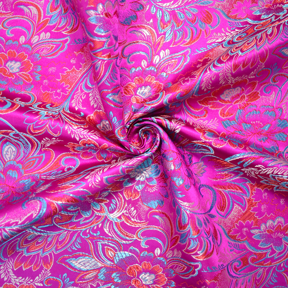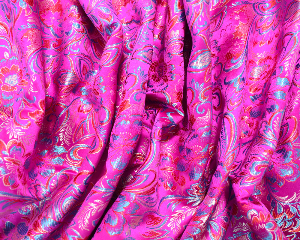 Fuchsia Pink-Aqua-Multi Polyester Floral Chinese Brocade Woven Fabric