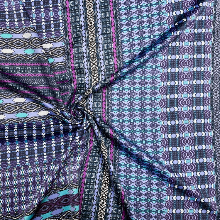 Purple-Inidigo-Multi Poly Aztec Border Printed Charmeuse Woven Fabric
