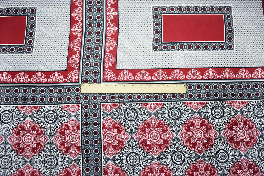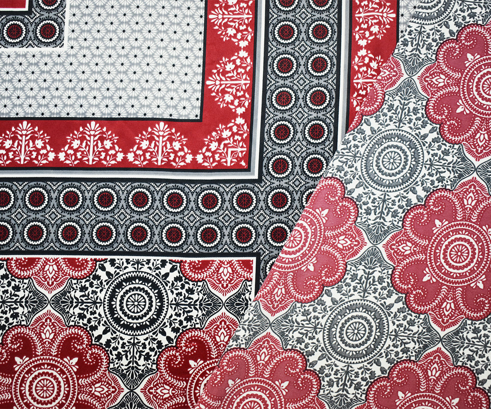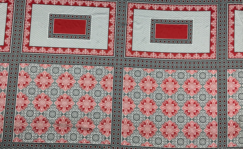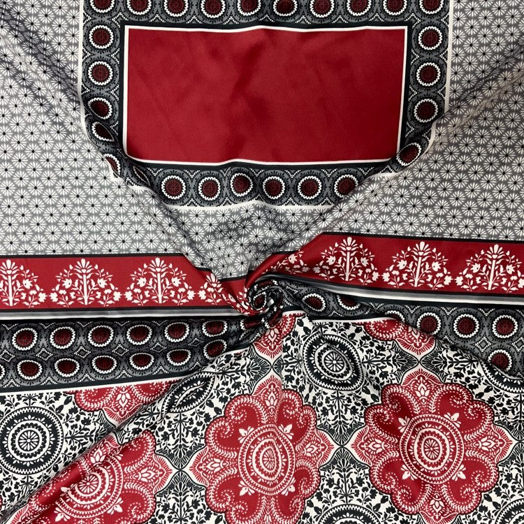 Red-Black-Multi Poly Border Medallion Printed Charmeuse Woven Fabric