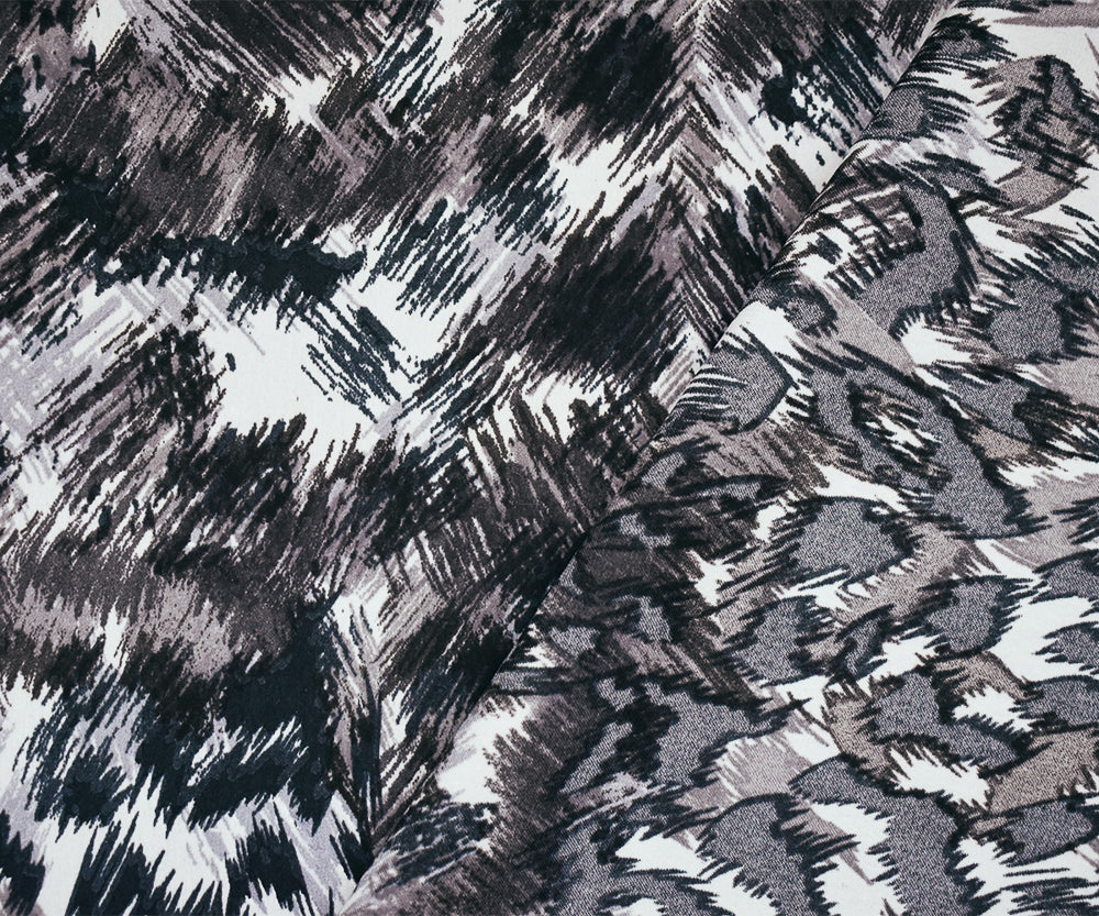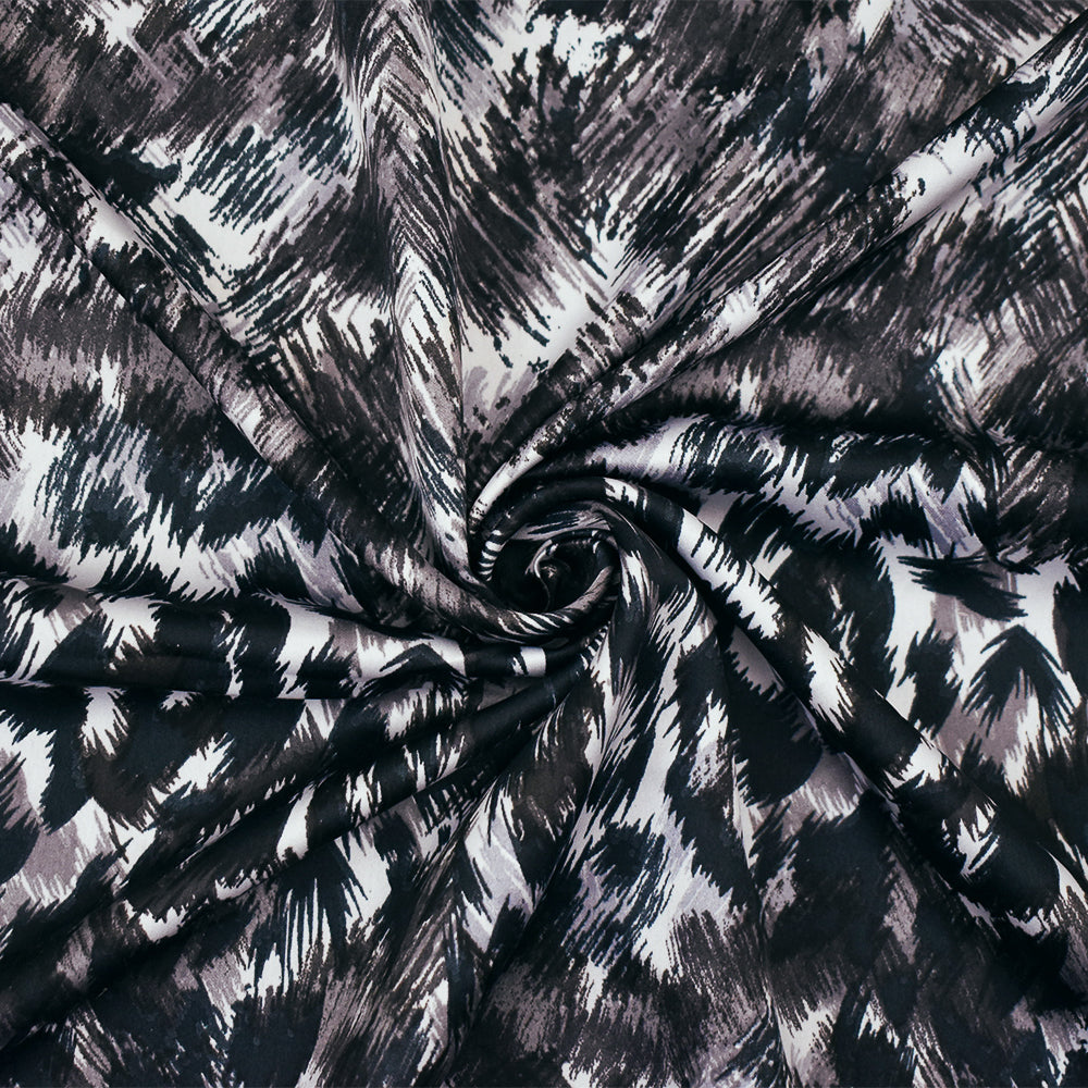 Black-Gray-Multi Polyester Abstract Printed Charmeuse Woven Fabric