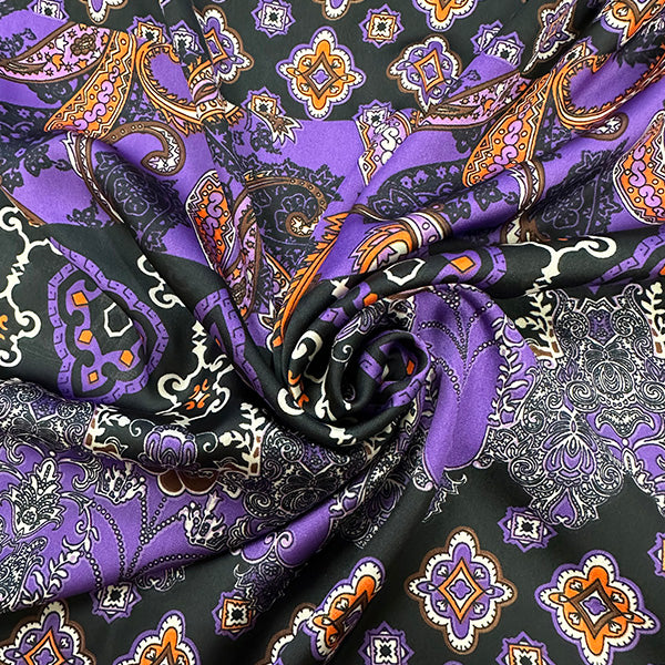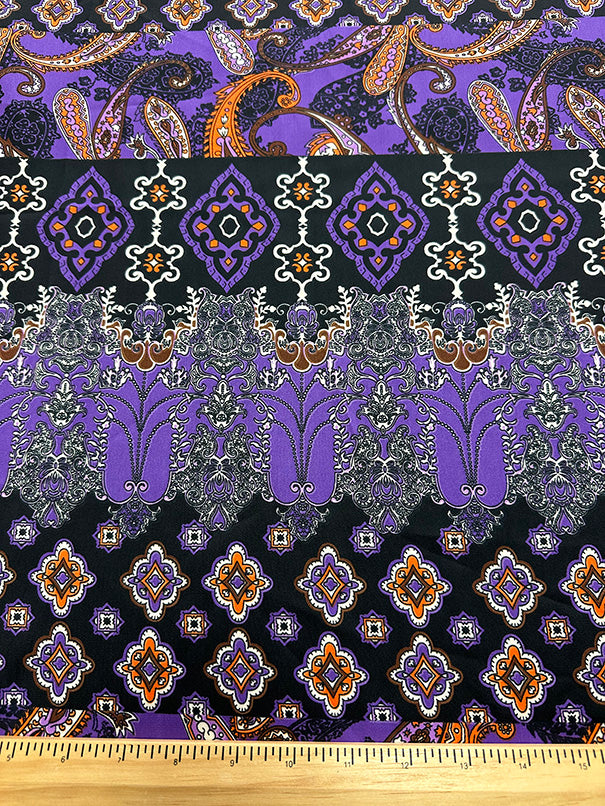 Purple Medallion Stripe Print Poly Charmeuse Satin Fabric