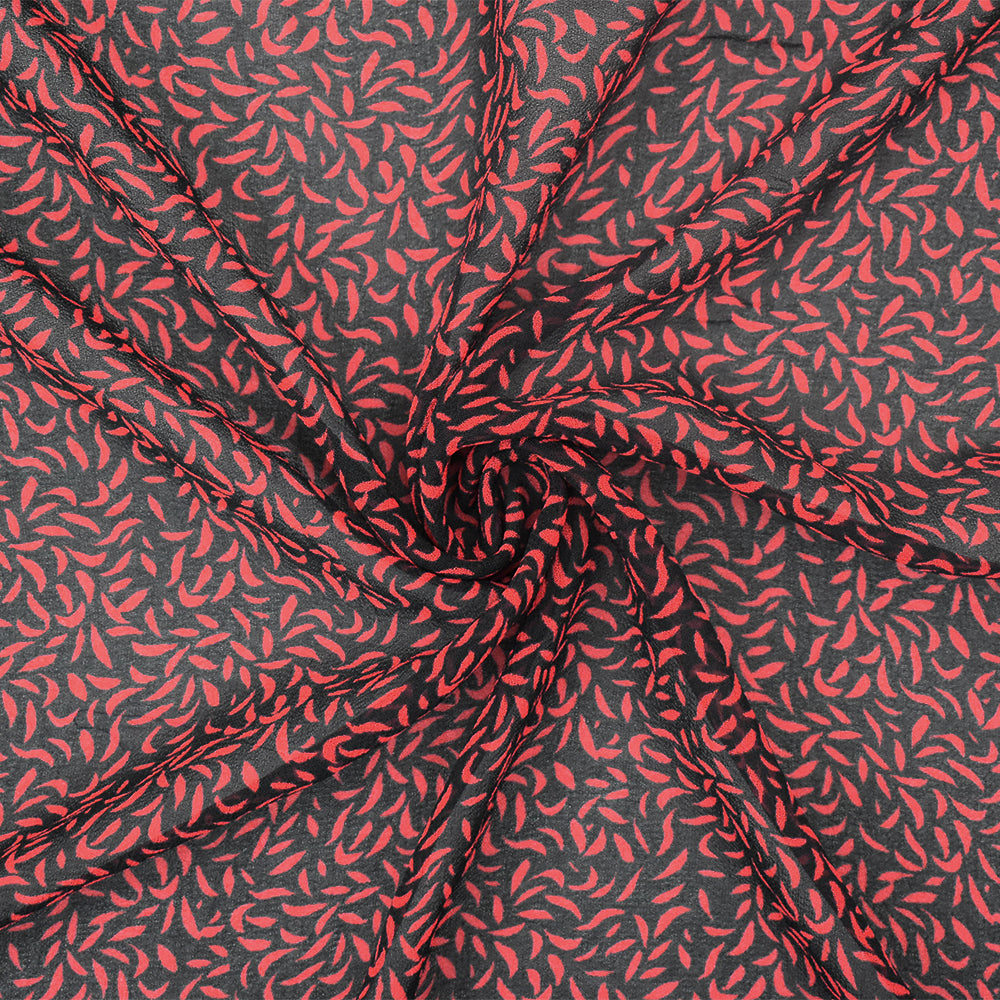Black-Red Abstract Printed Poly Chiffon Woven Fabric
