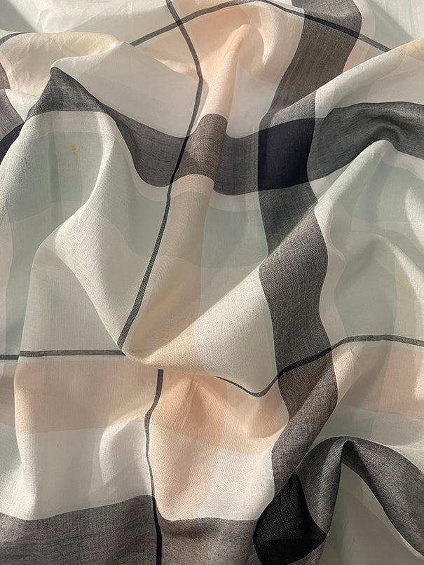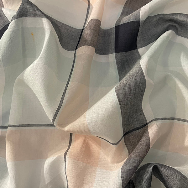-Black Multi Large Plaid Batiste Fabric