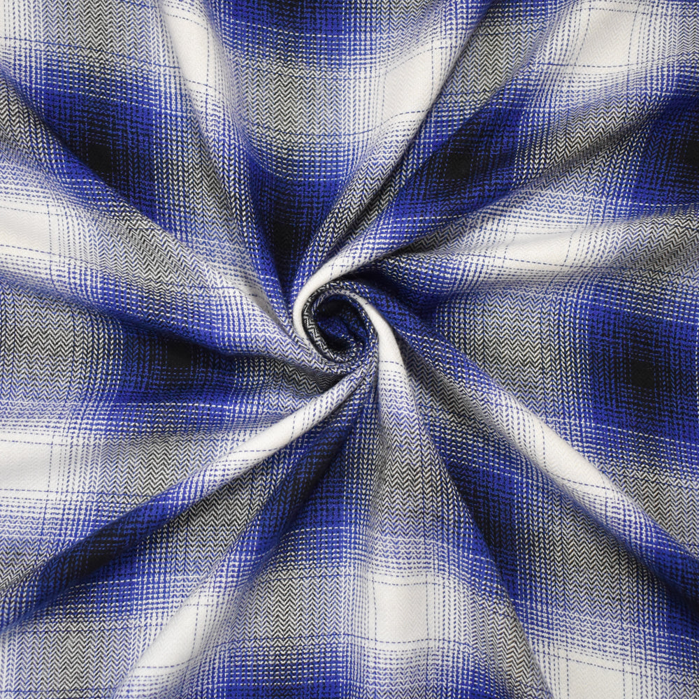 Blue-White-Multi Famous Maker Plaid Twill Woven Fabric