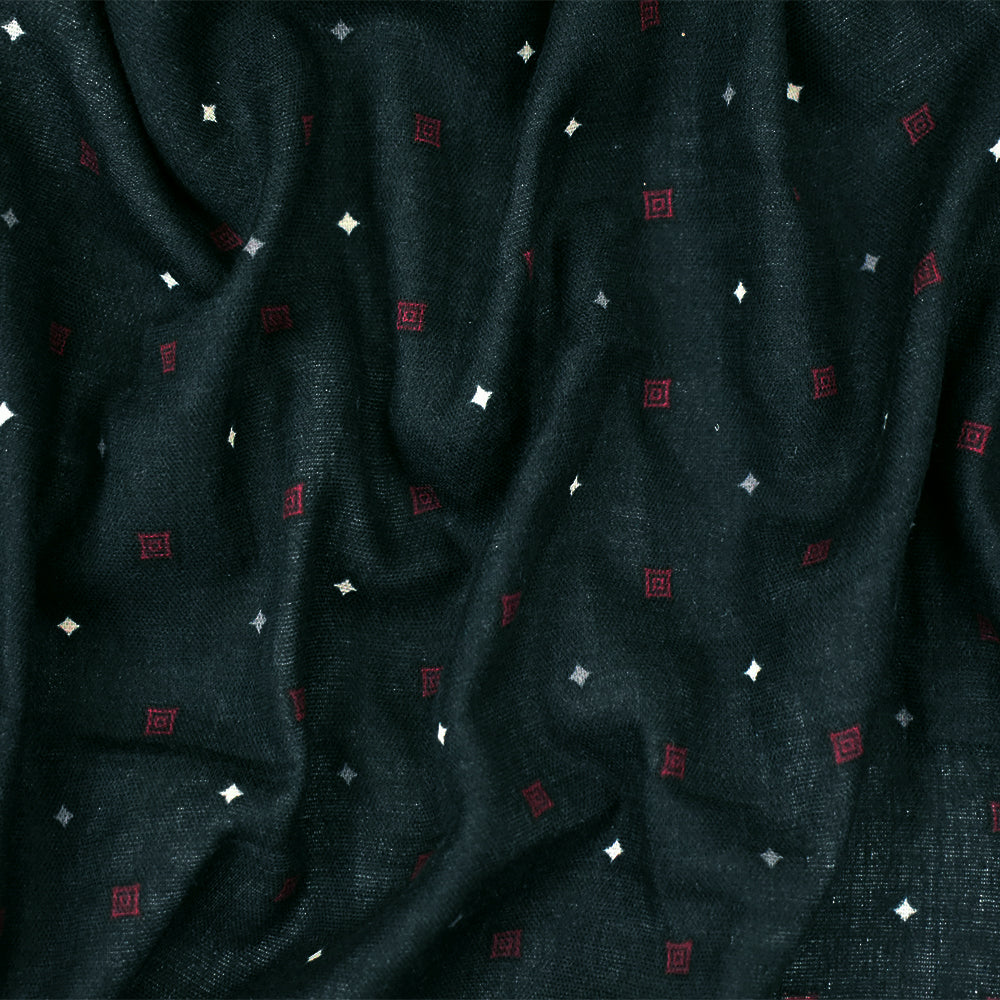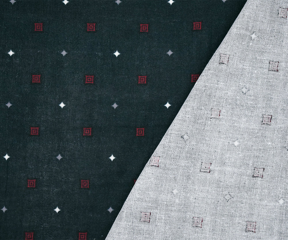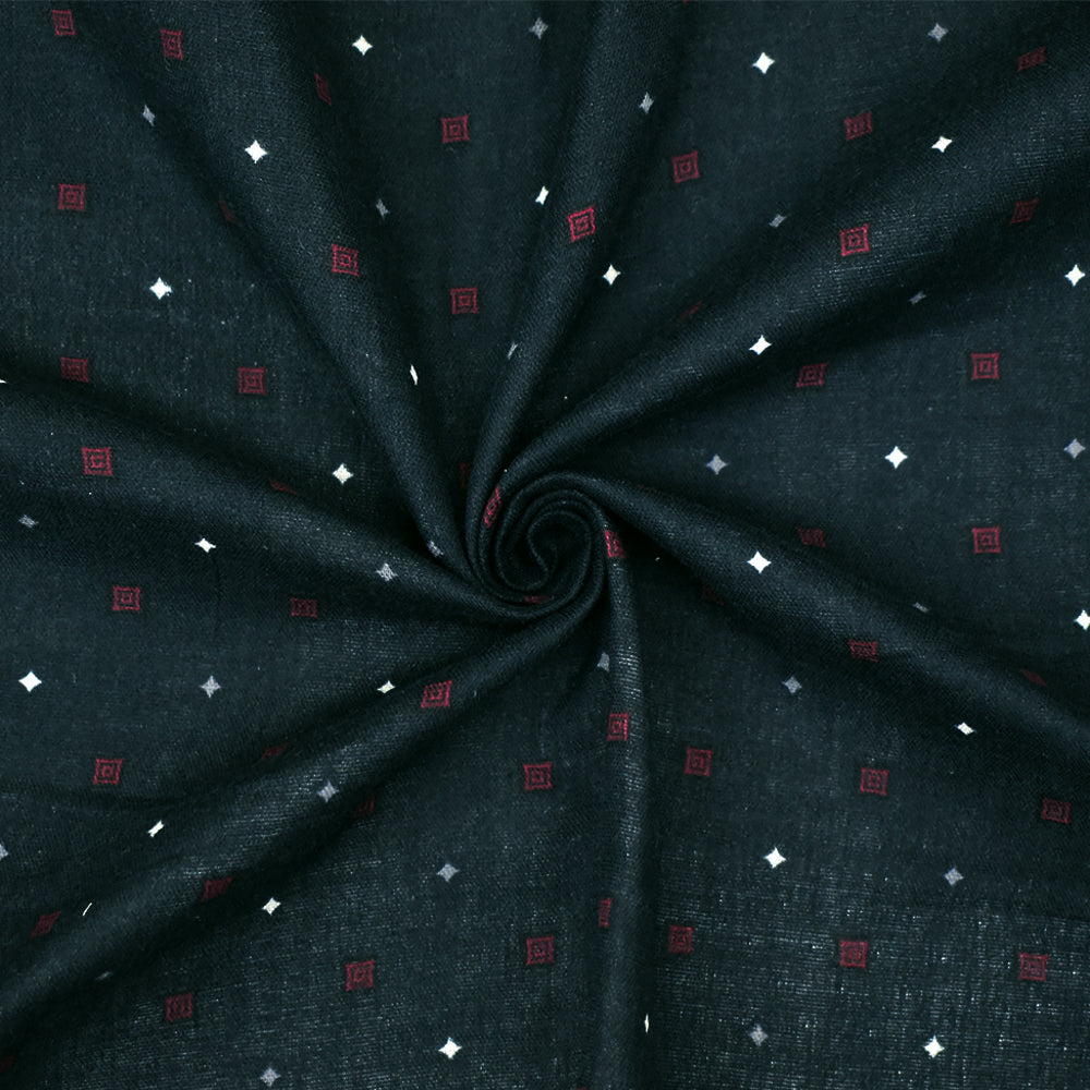 Deep Navy-Red-White Micro Star-Square Printed Cotton Double Gauze Fabric