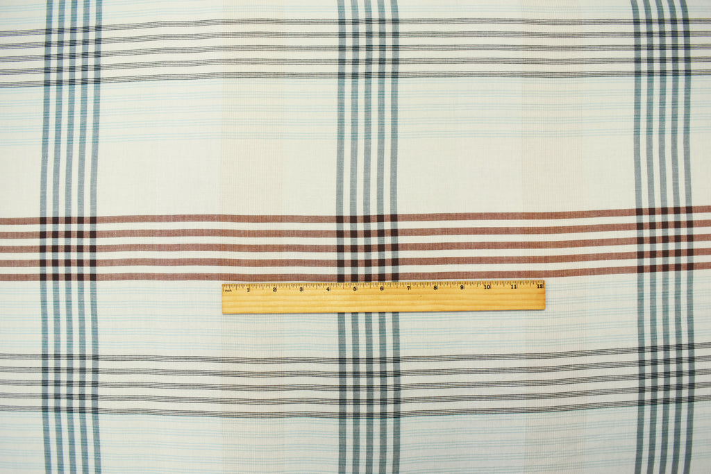 Off-White-Teal Multi Cotton Famous Maker Plaid Gauze Woven Fabric