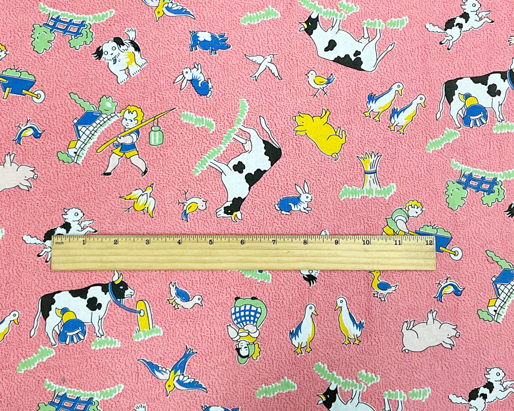 Pink-White-Multi Cotton Novelty Printed Plain Woven Fabric