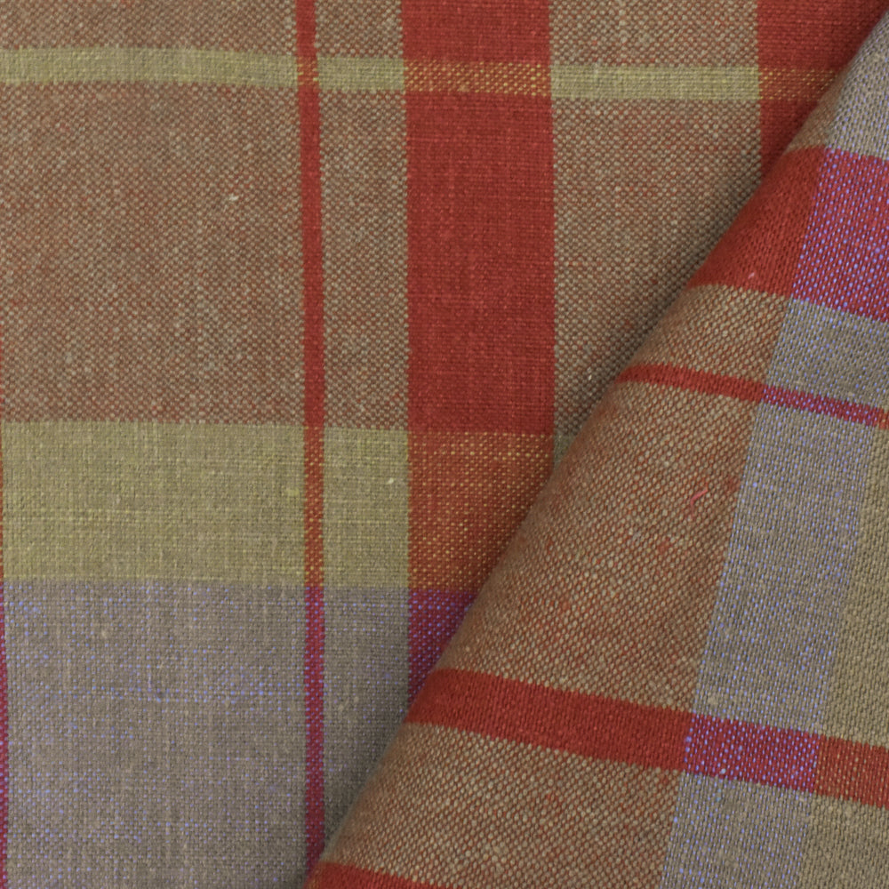 Rustic Red-Beige-Multi Cotton Woven Plaid Madras Fabric