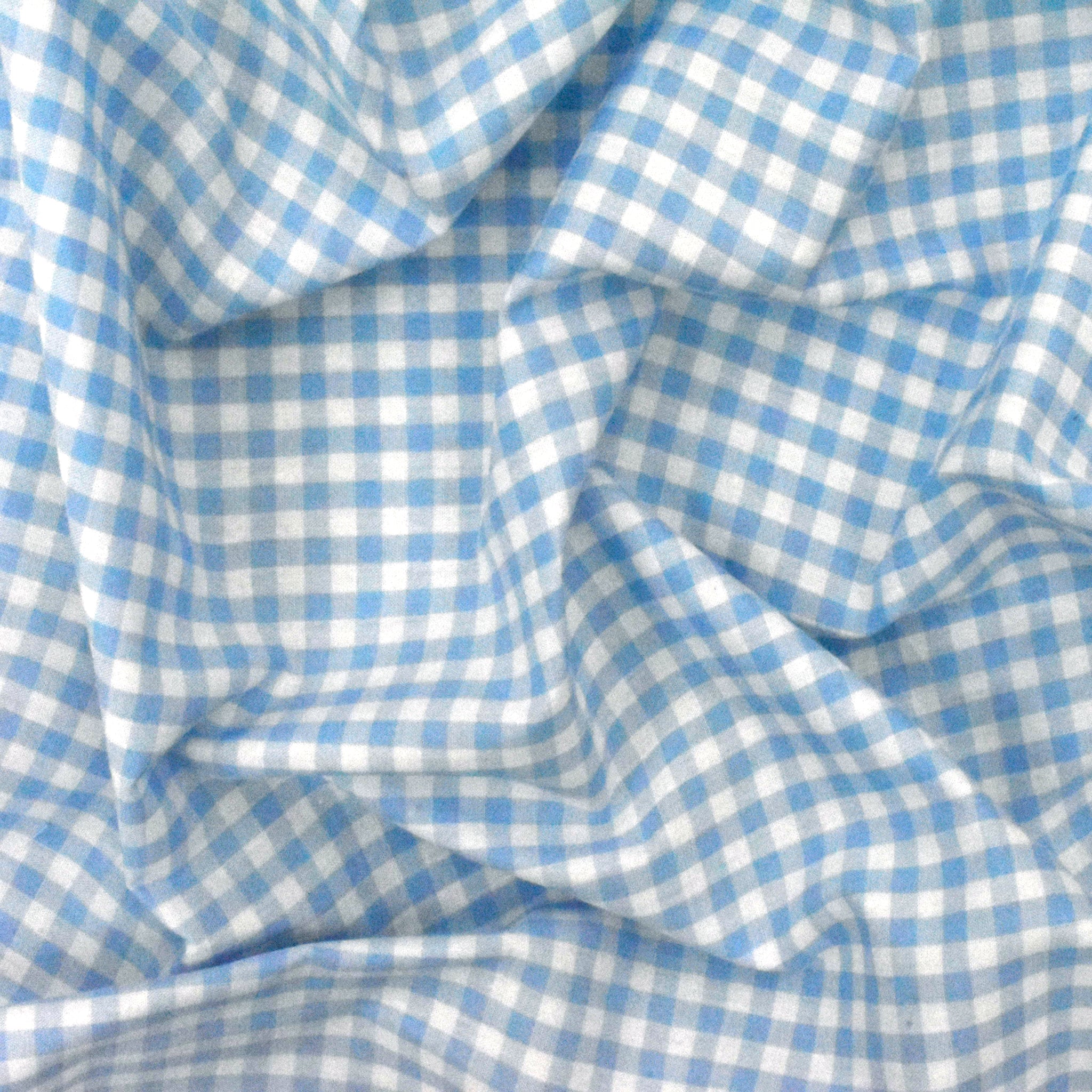 Sky Blue-White Cotton Gingham Batiste Woven Fabric