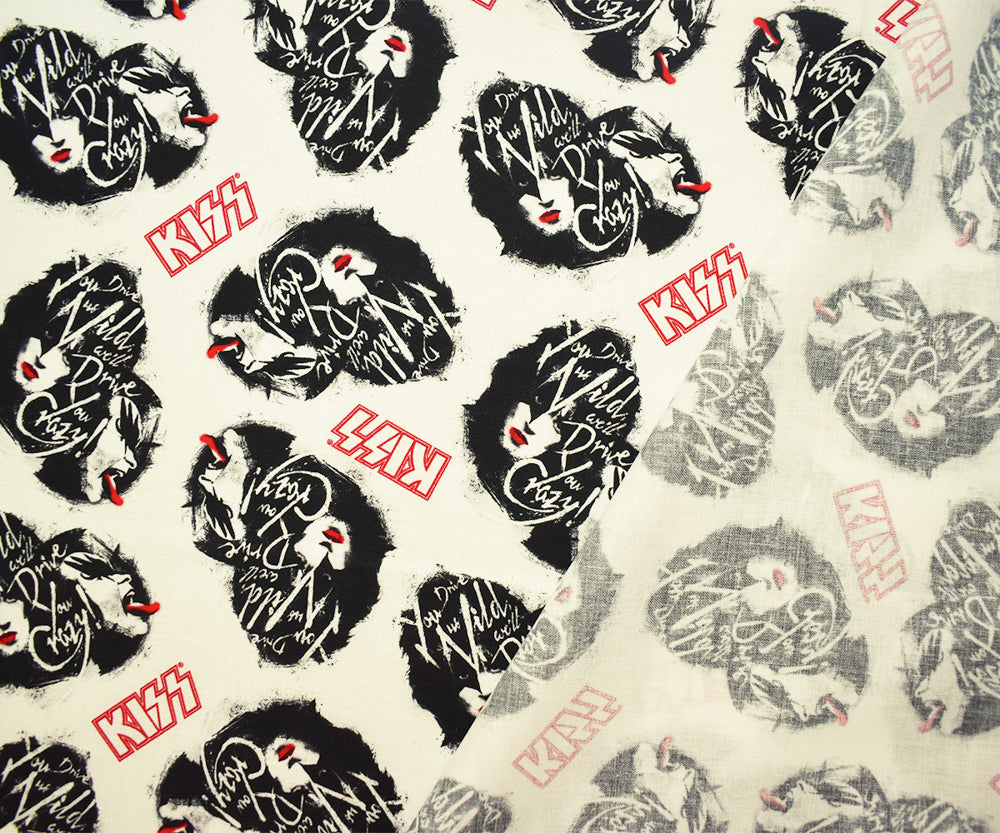 -White-Black-Multi Kiss Drive You Printed Cotton Quilting Woven Fabric