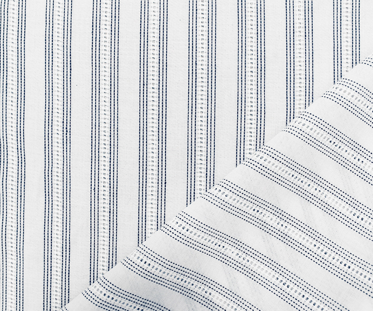 White-Navy Famous Maker Cotton Stripe Patterned Woven Batiste Fabric