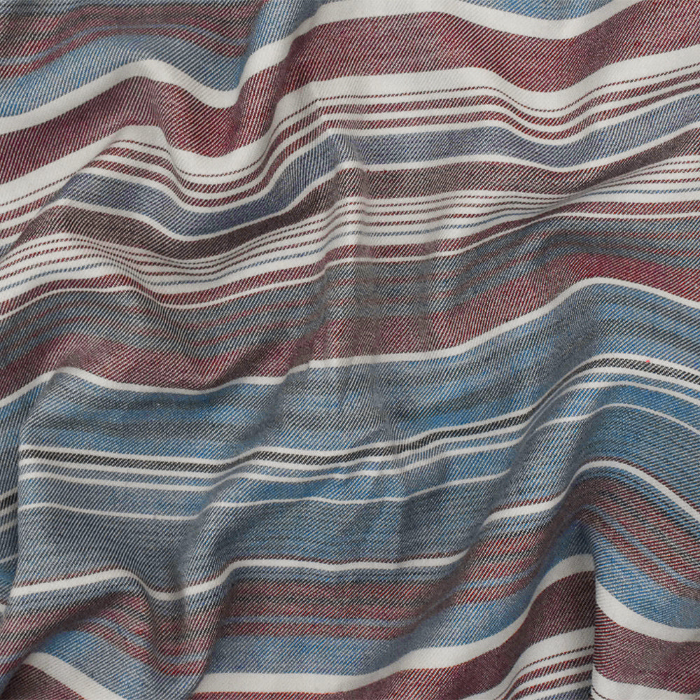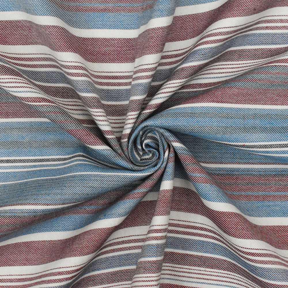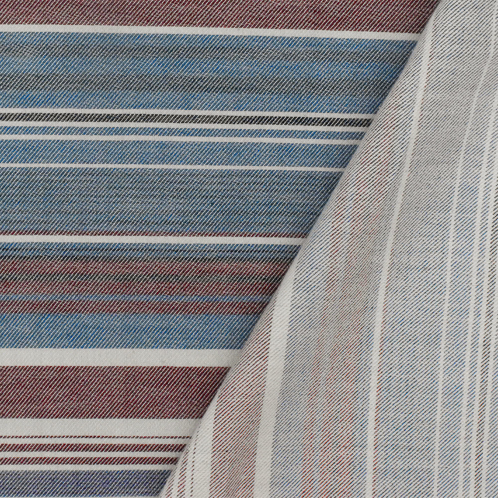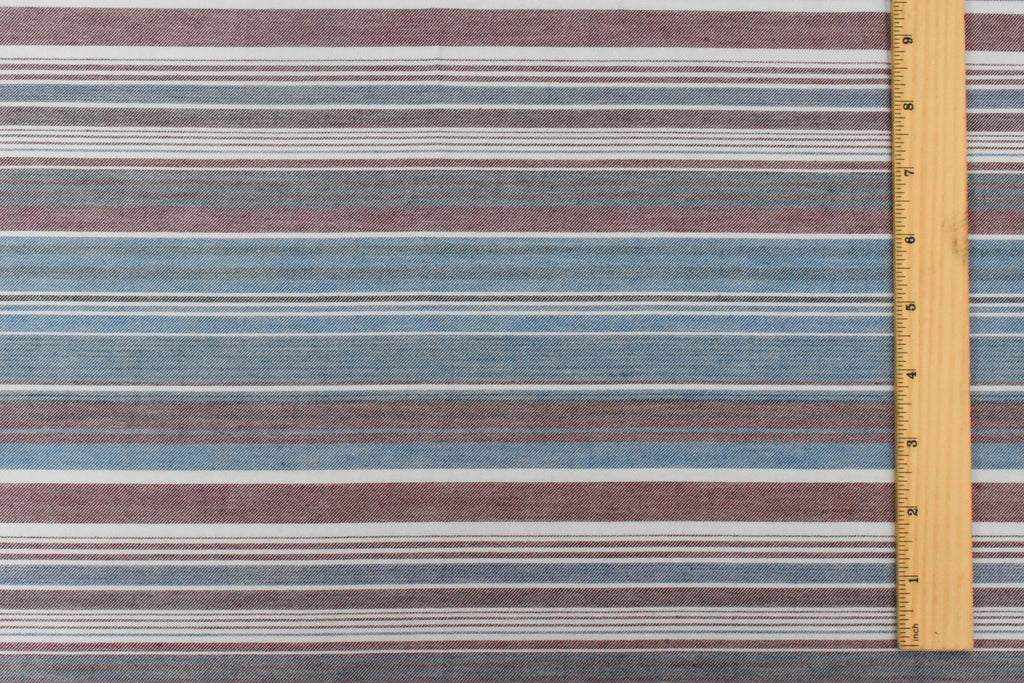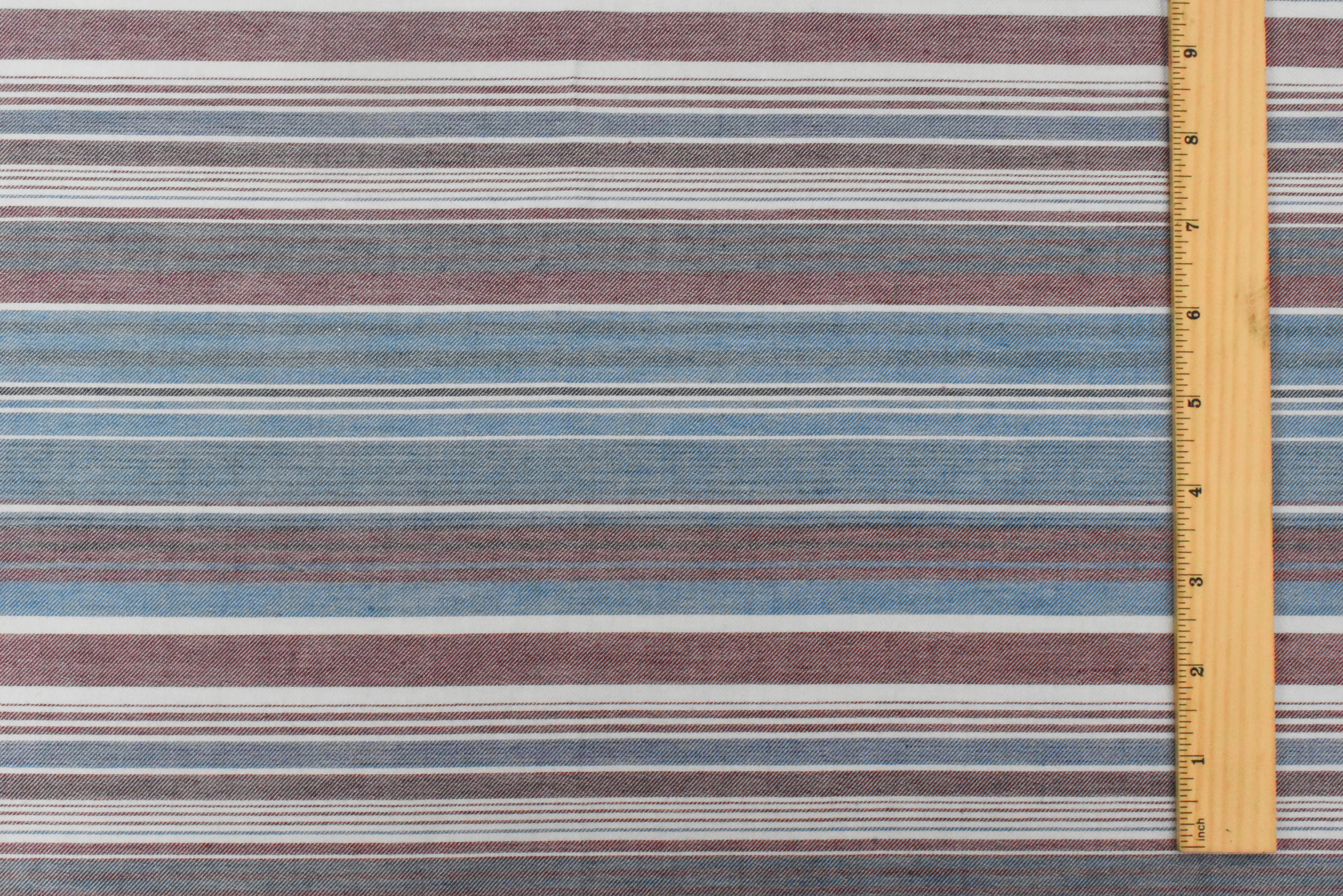 Winery Red-Blue-Multi Stripe Cotton Twill Woven Fabric