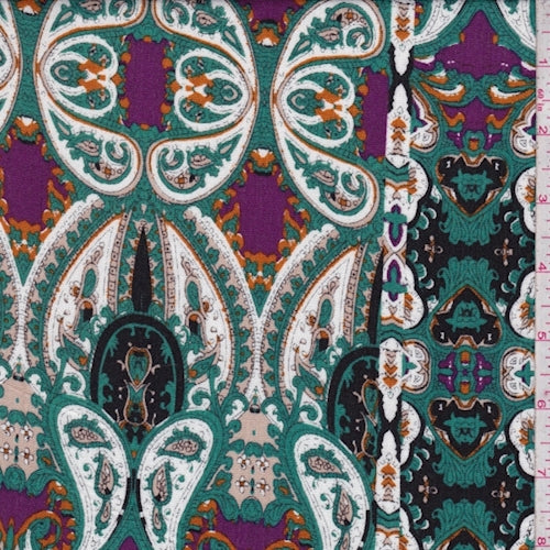 Black/Jade/Purple Paisley Stripe Crinkled Gauze Fabric