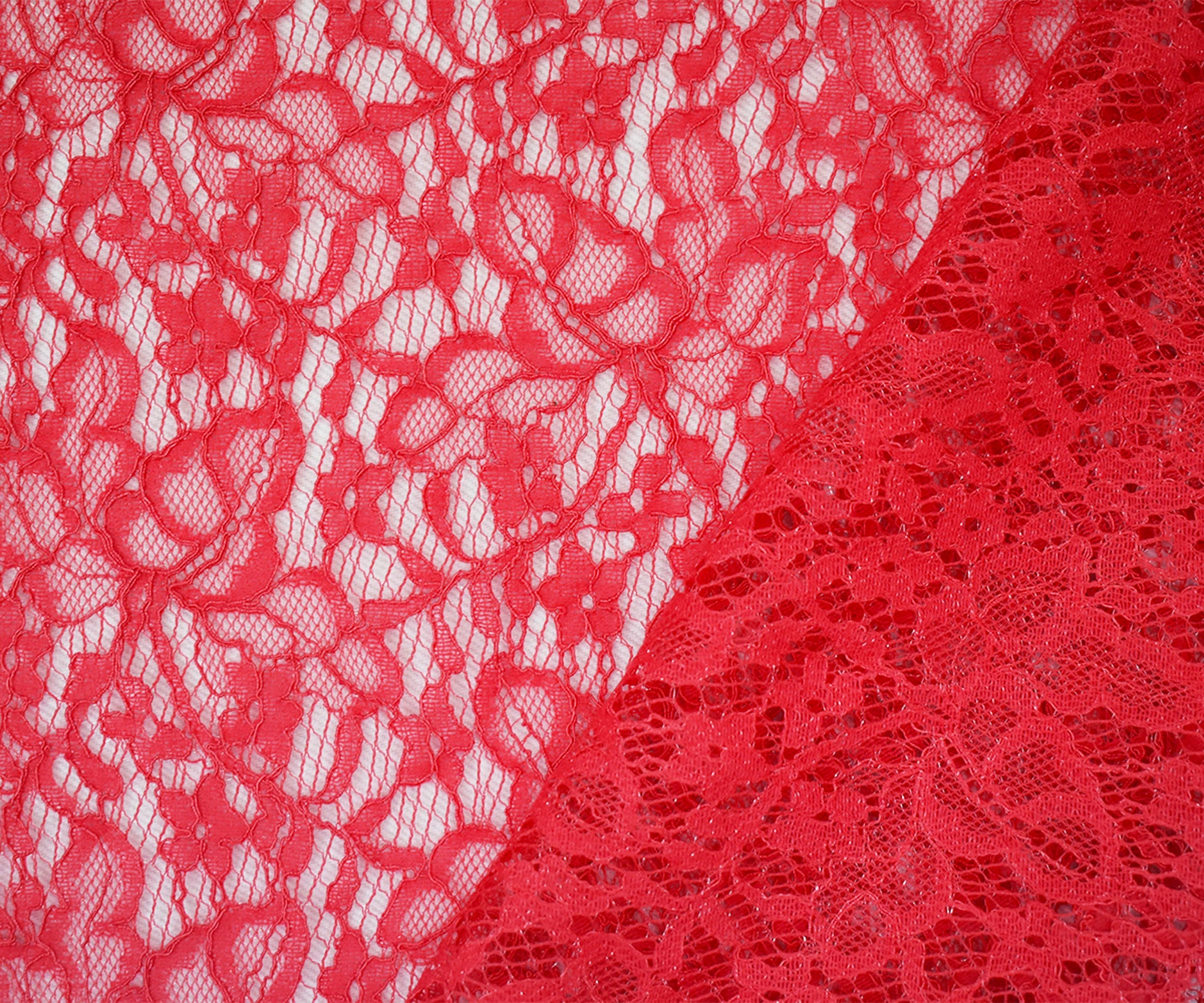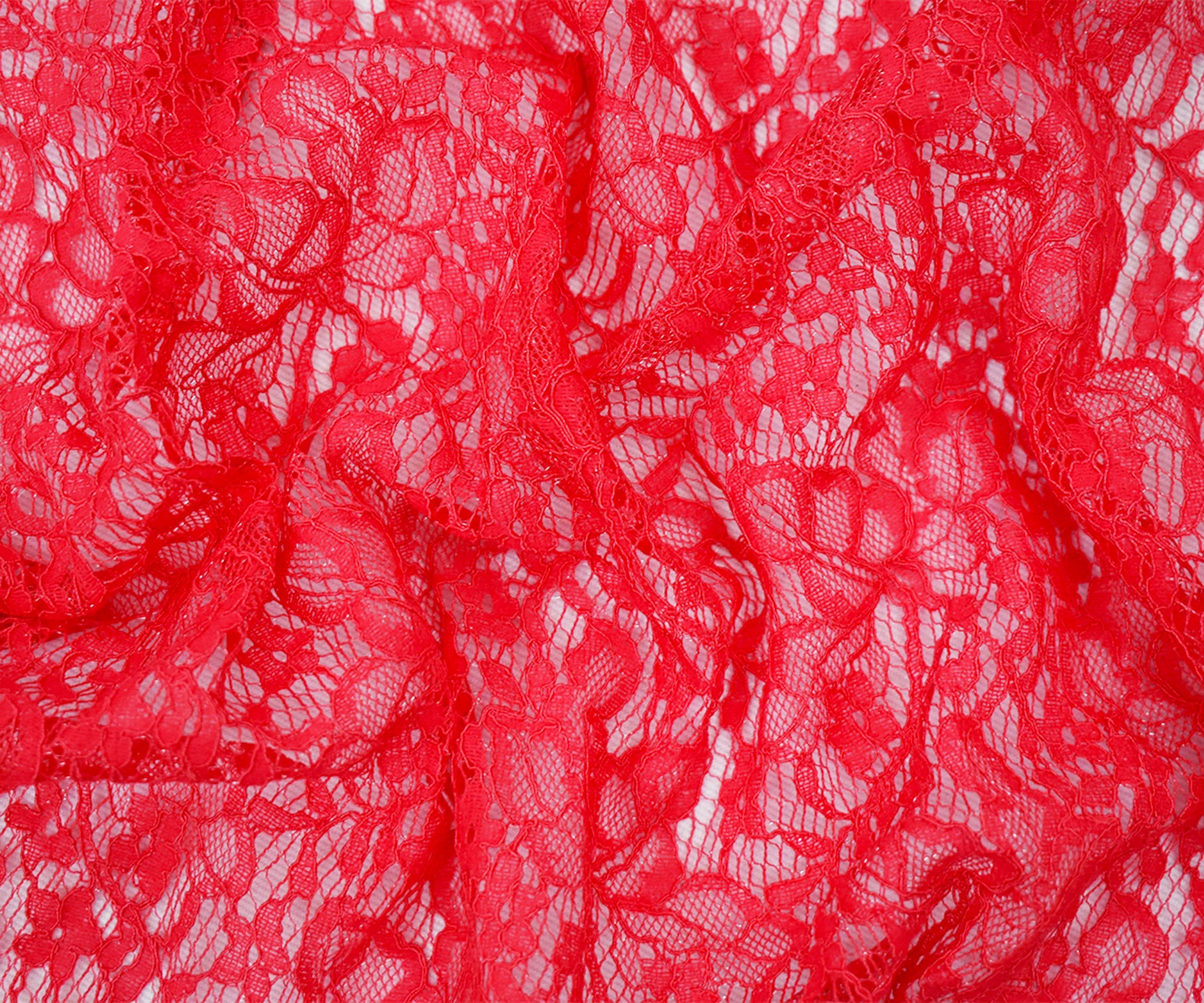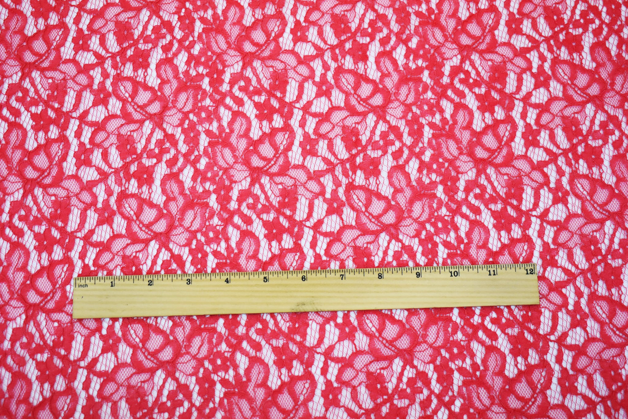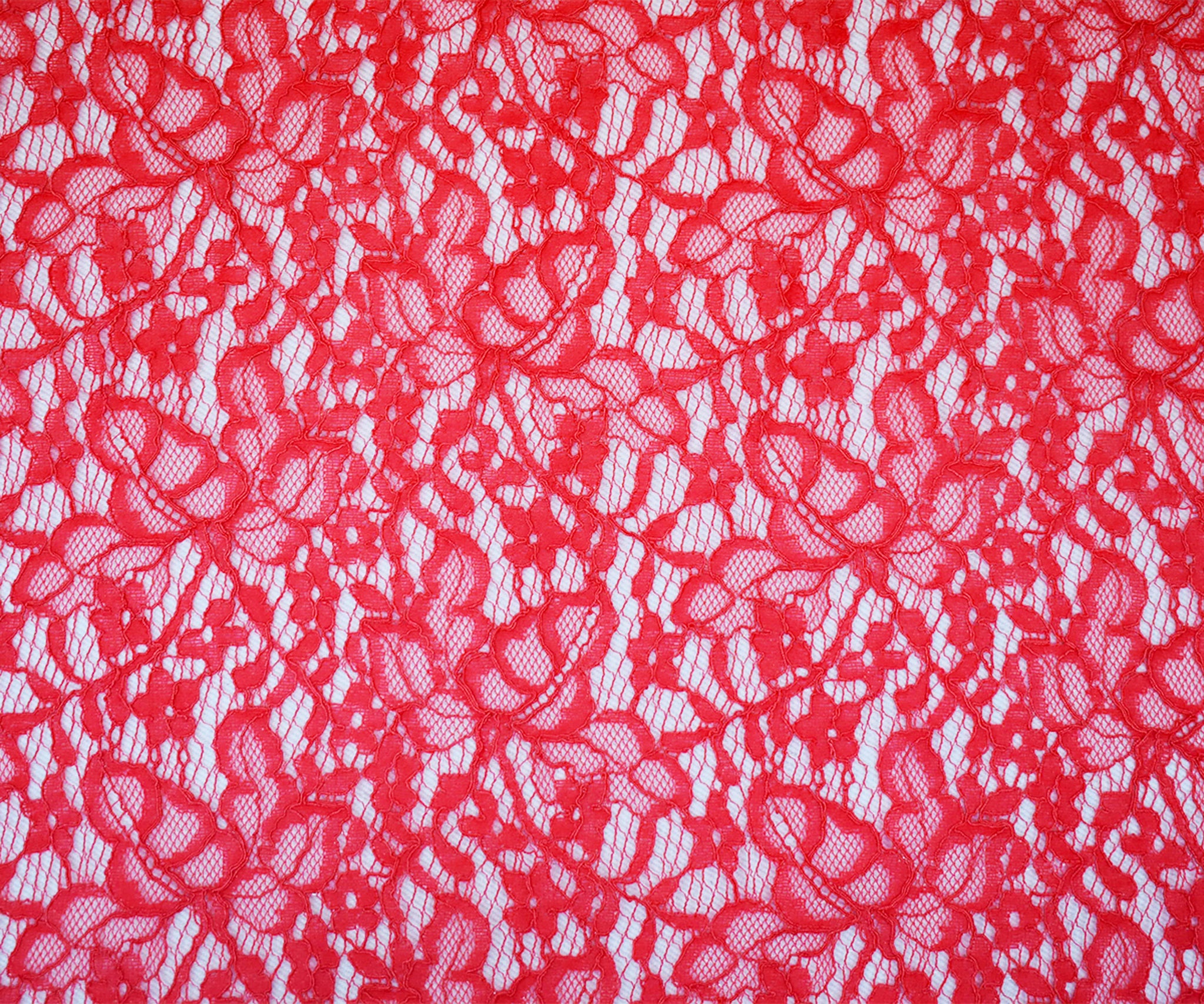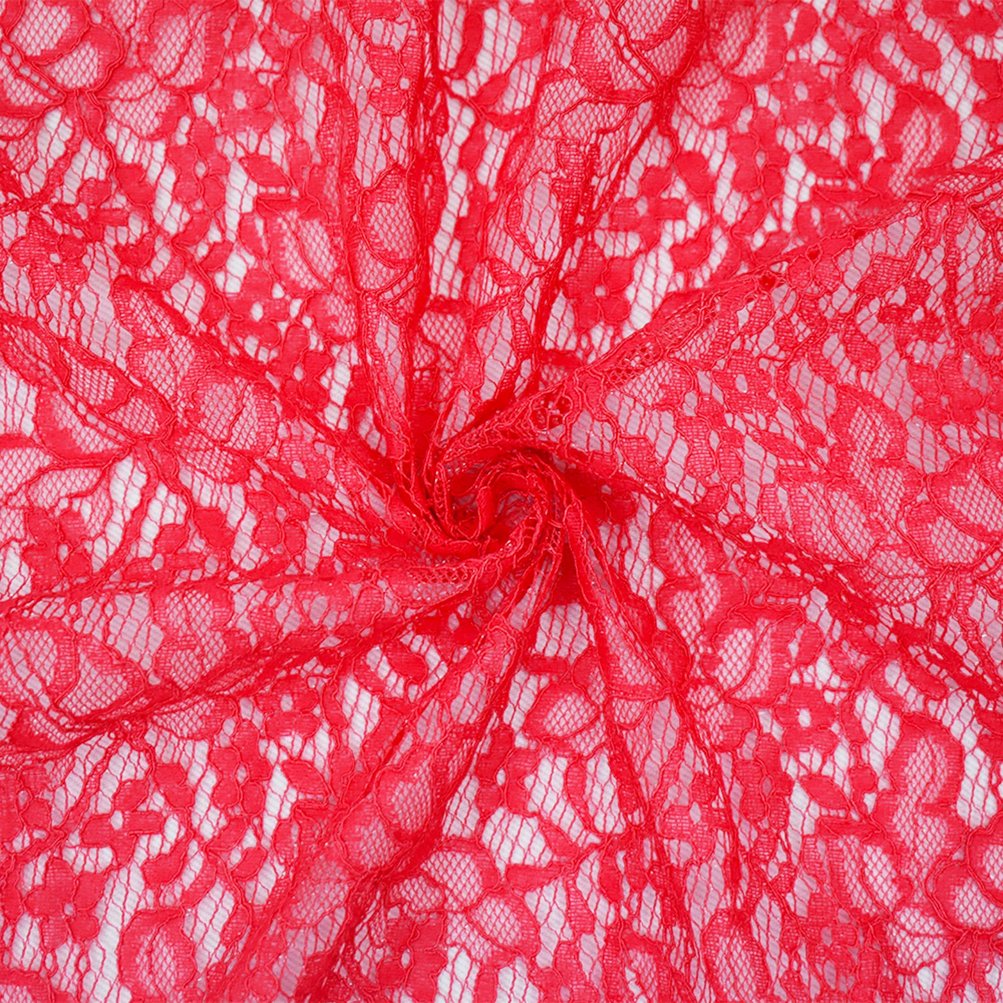 Coral Red Nylon Cotton Crochet Floral Lace Mesh Knit Fabric