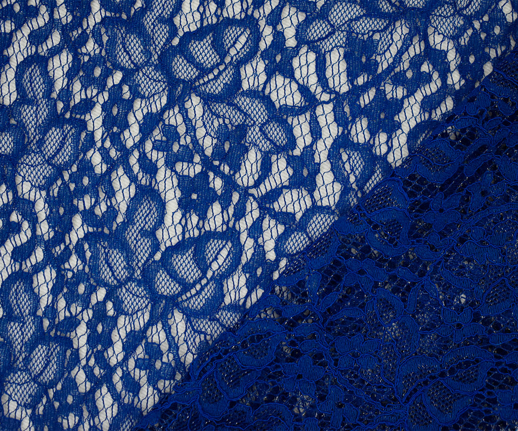 Deep Blue-Silver Cotton Poly Crochet Floral Lace Mesh Knit Fabric