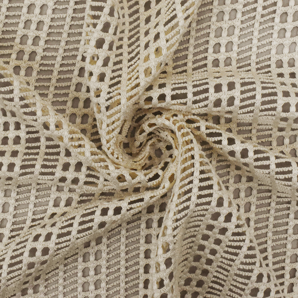 Light Beige Stripe Net-like Stretch Nylon Crochet Knit Fabric