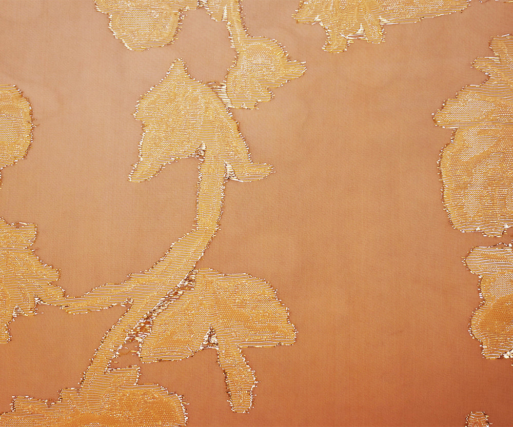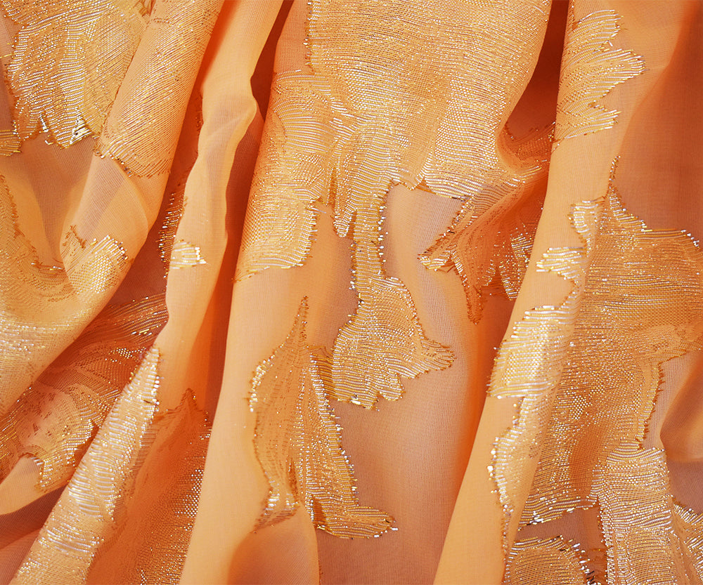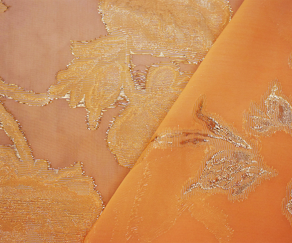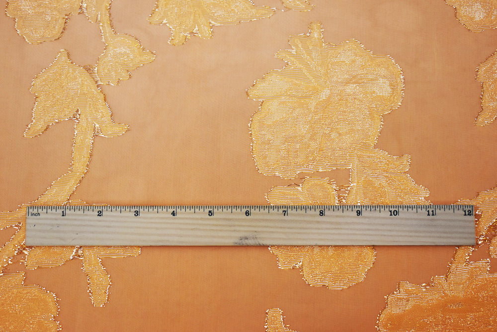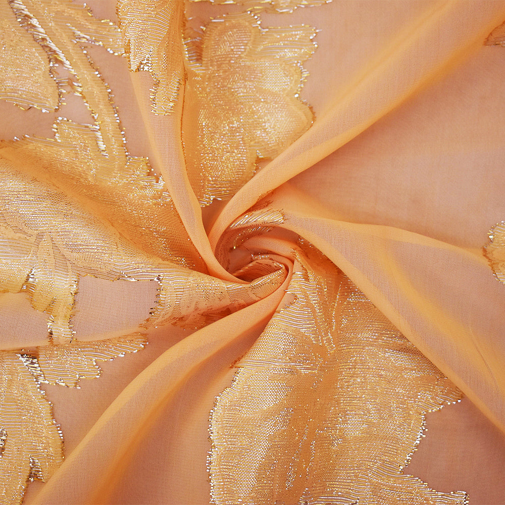Orange-Gold Nylon Blend Metallic Floral Organza Jacquard Woven Fabric