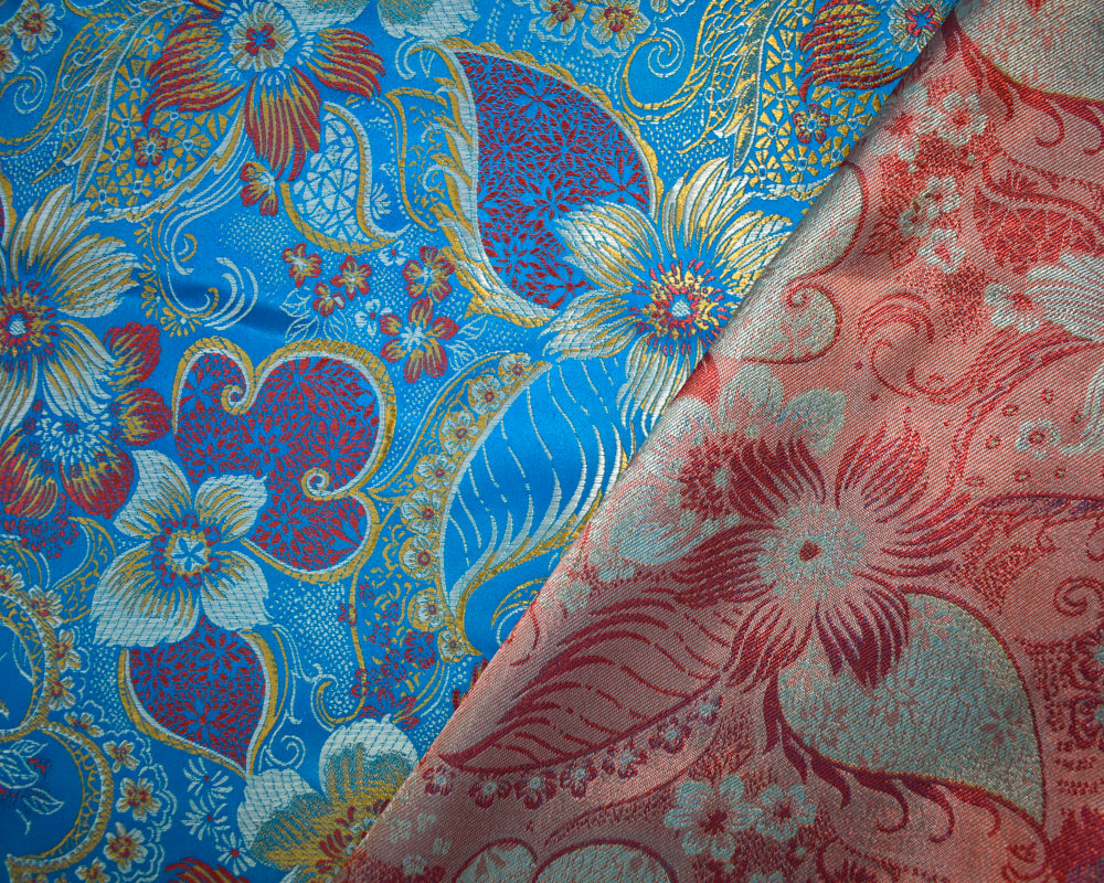 Aqua Blue-Multi Polyester Floral Chinese Brocade Woven Fabric