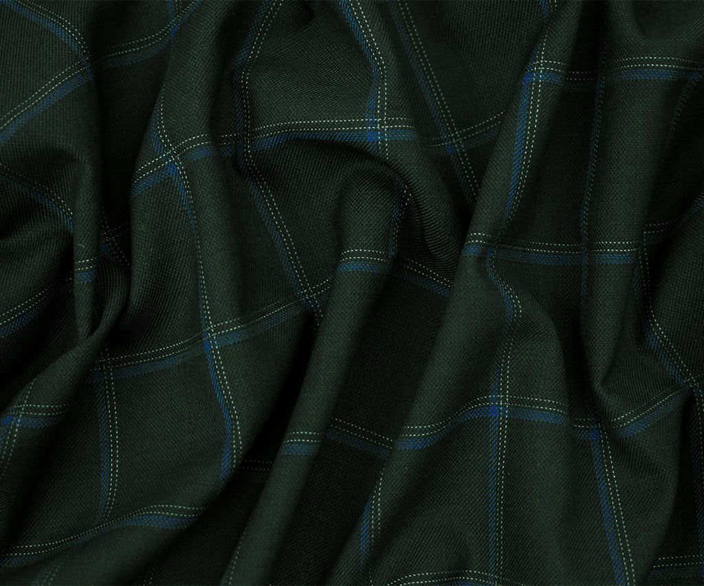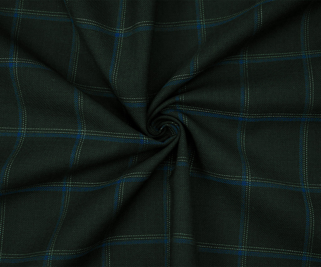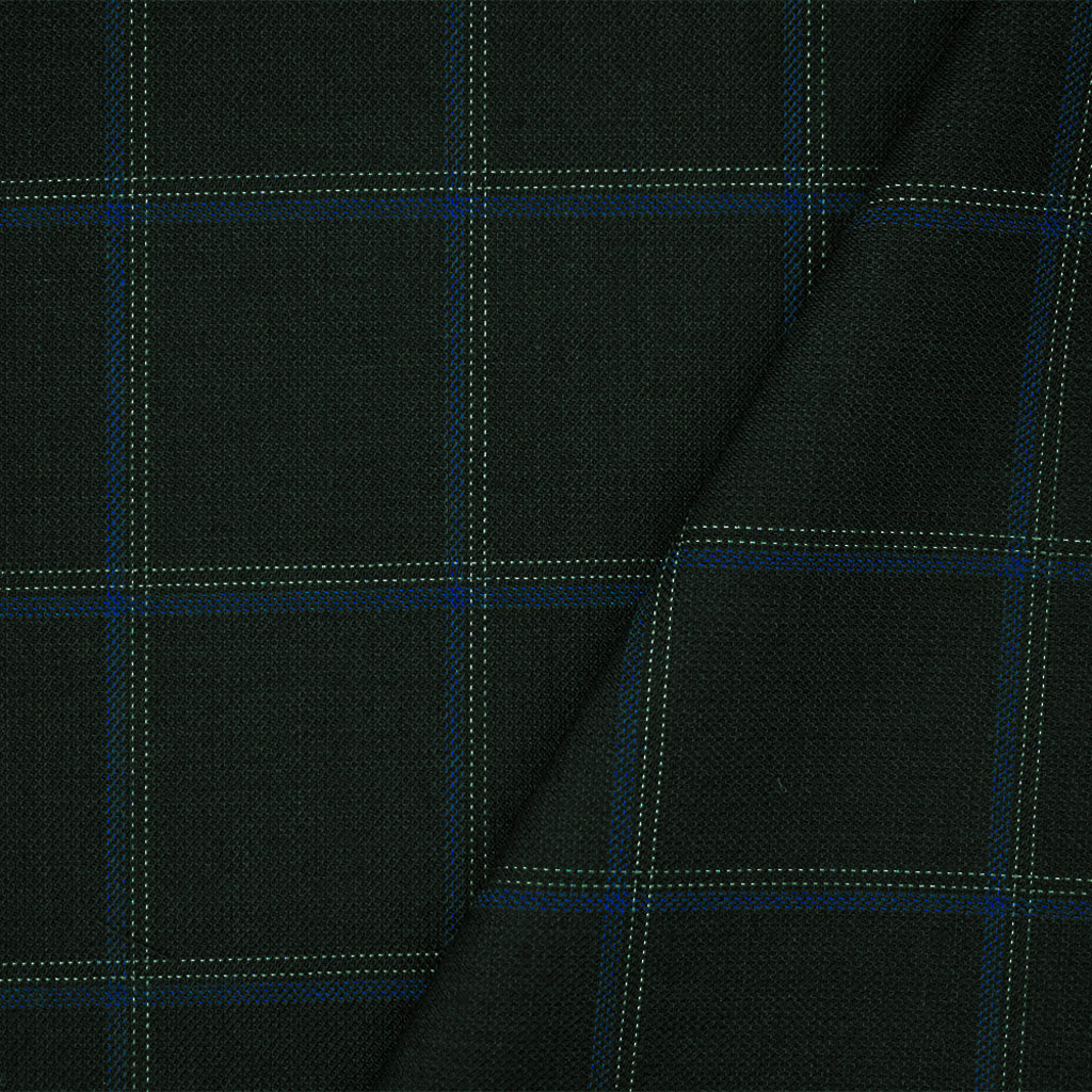 Black-Blue-Gray Tropical Poly Wool Check Twill Suiting Woven Fabric