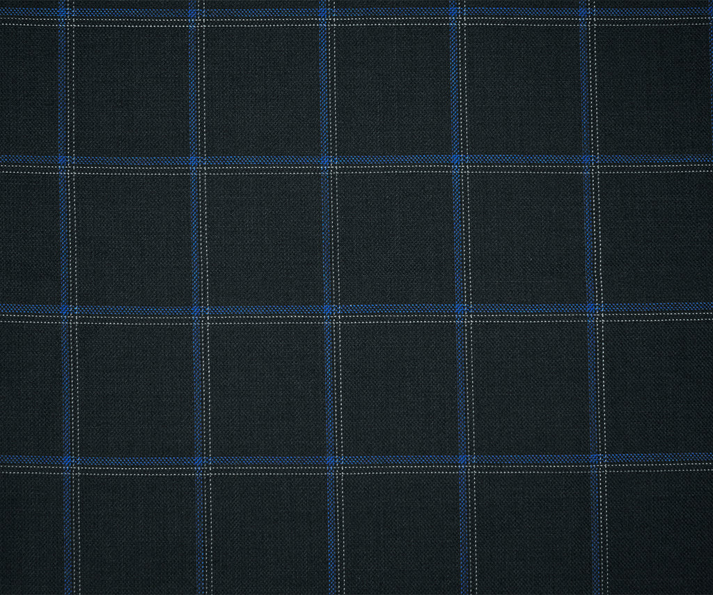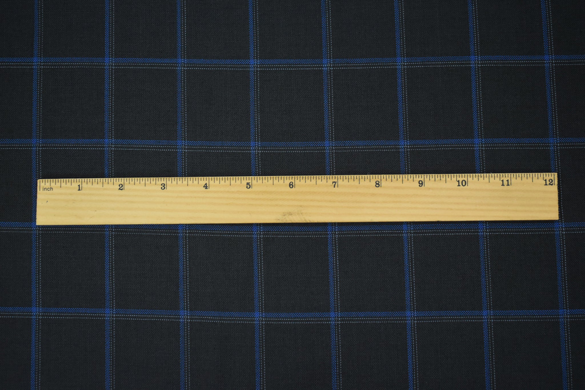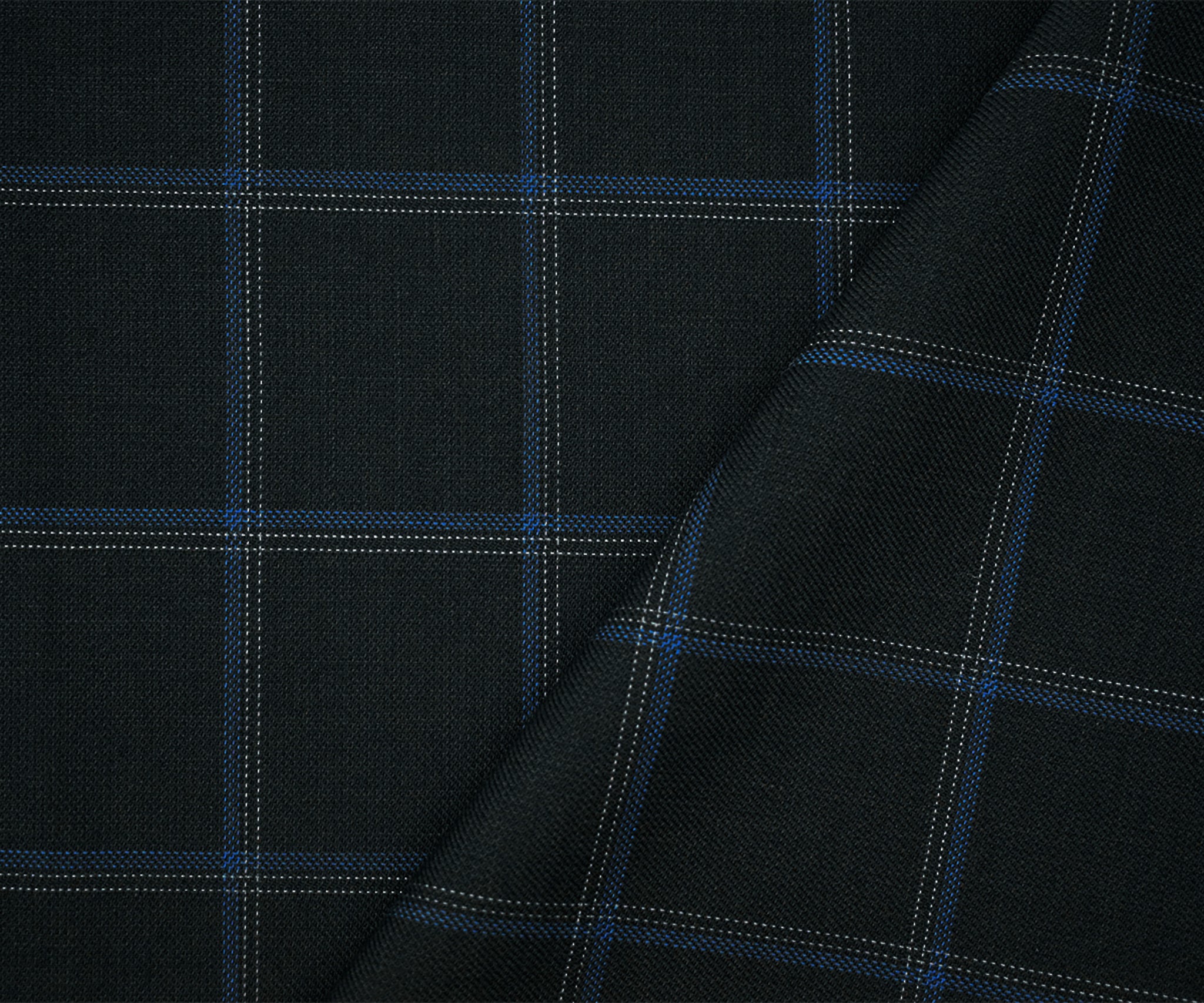 Black-Gray-Blue Poly-Wool Check-Plaid Shirting Twill Woven Fabric
