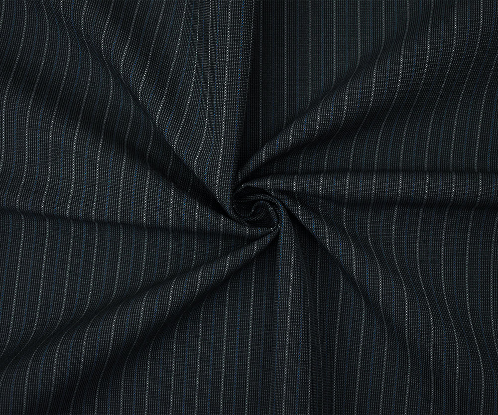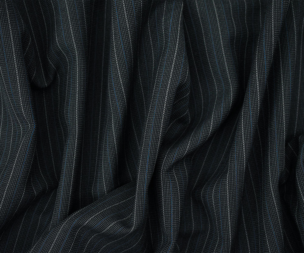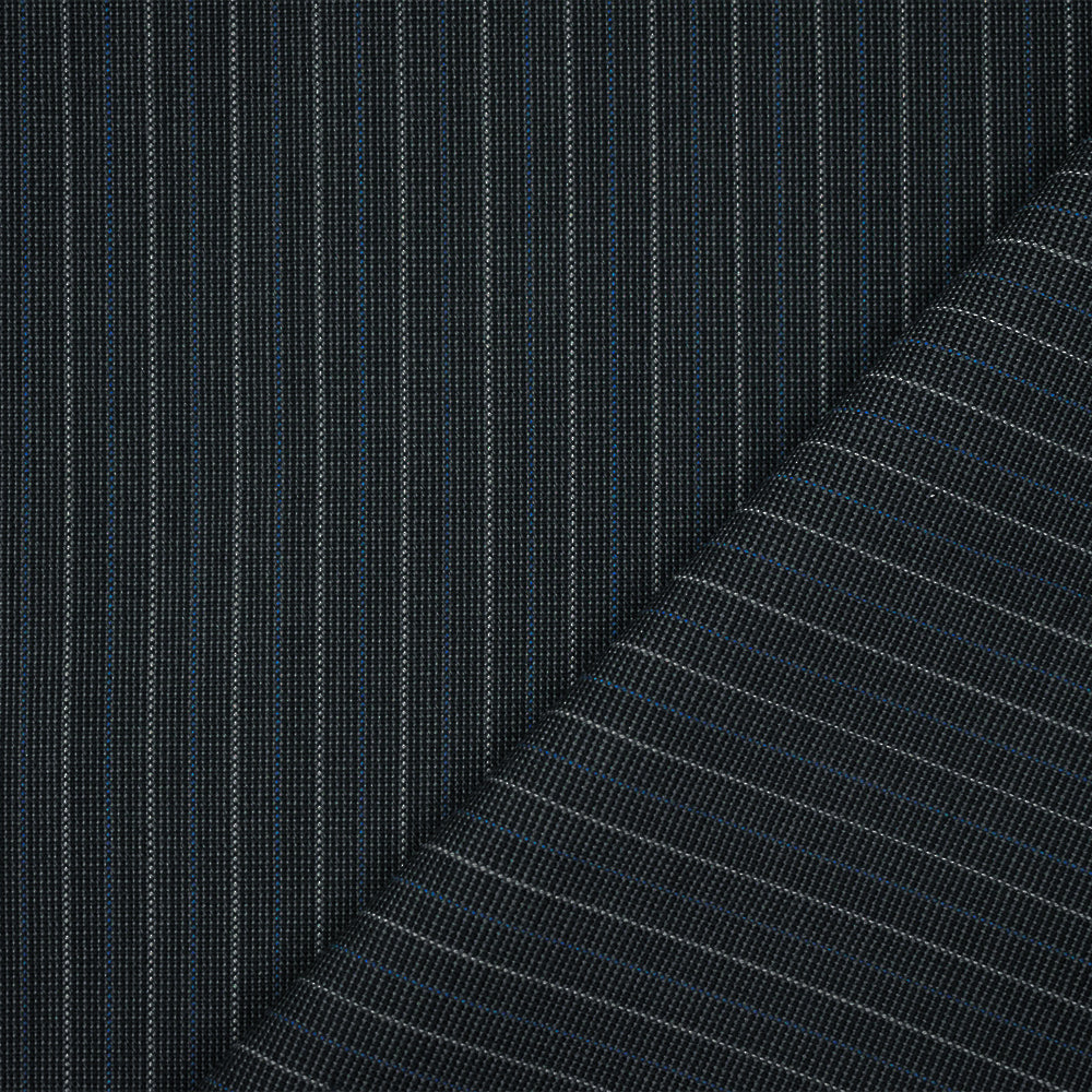 Black-Gray-Blue Polyester Wool Striped Woven Shirting Fabric