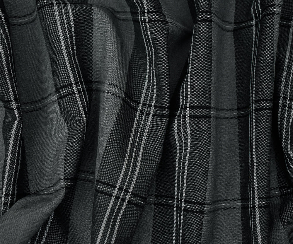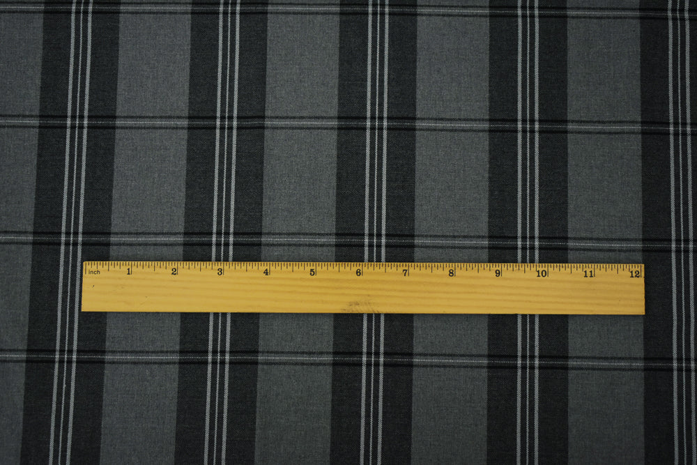 Black-Gray Polyester Wool Blend Plaid Shirting Woven Fabric