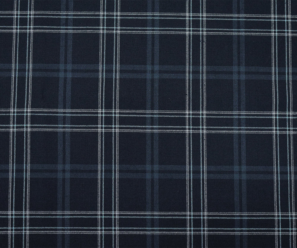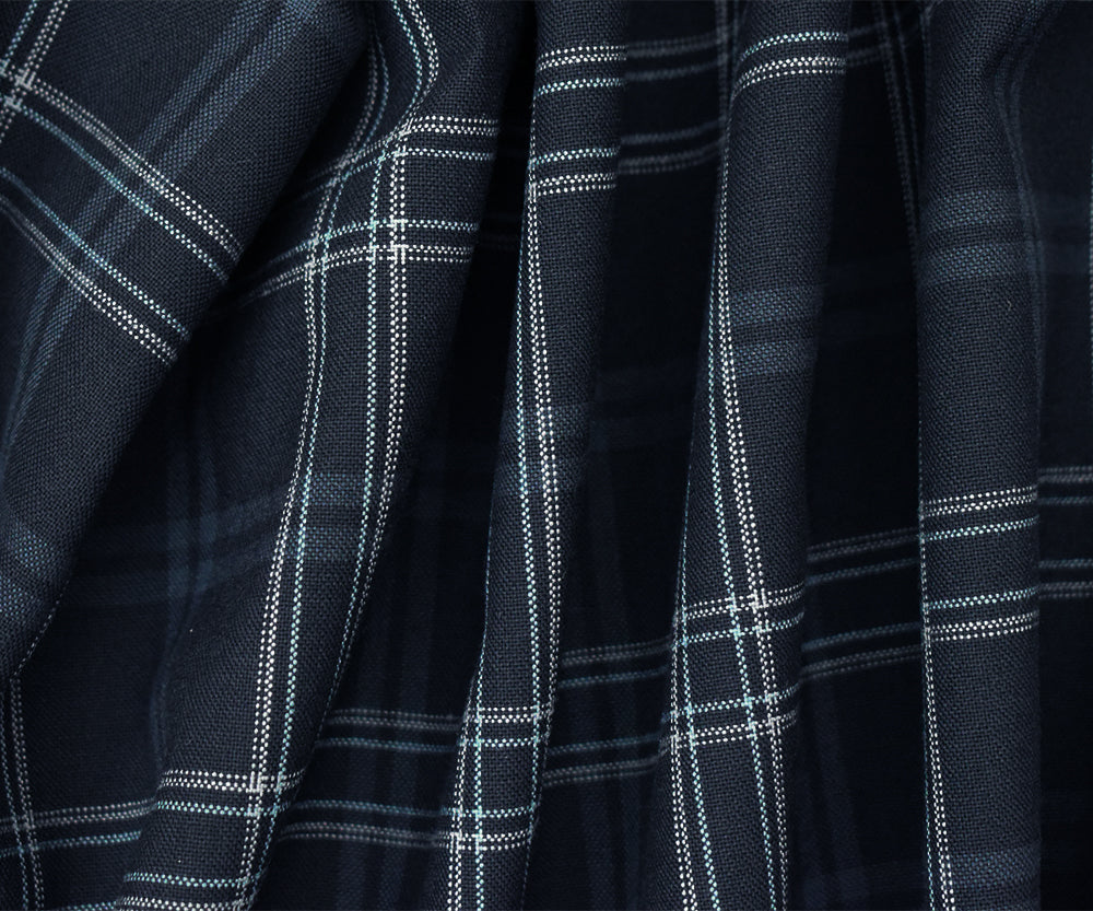 Black-Light Blue-Multi Poly Wool Plaid Woven Shirting Fabric