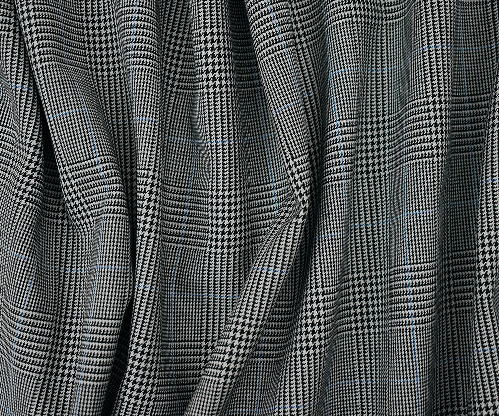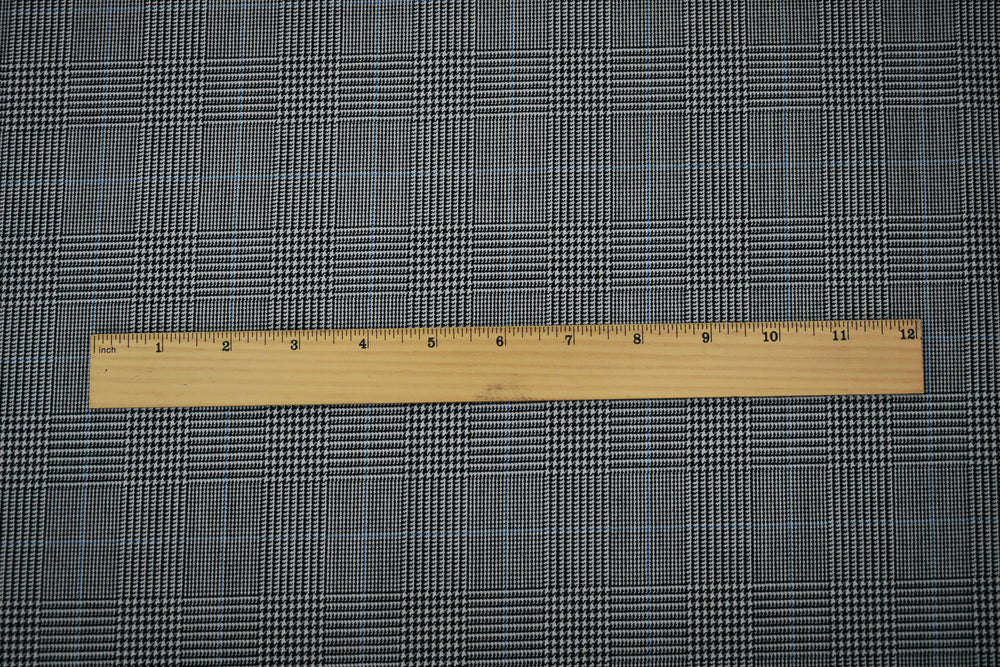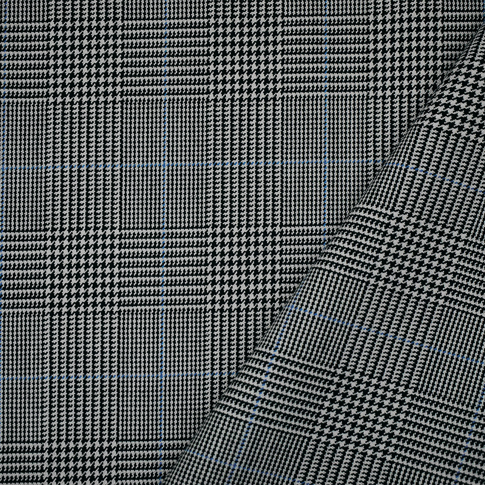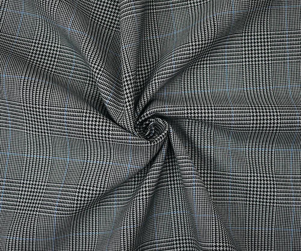 Black-Light Gray-Blue Poly Wool Blend Glen Plaid Check Suiting Woven Fabric