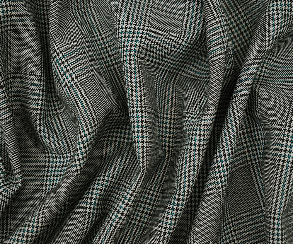 Black-Off-White-Green Poly-Wool Glen Plaid Check Suiting Woven Fabric